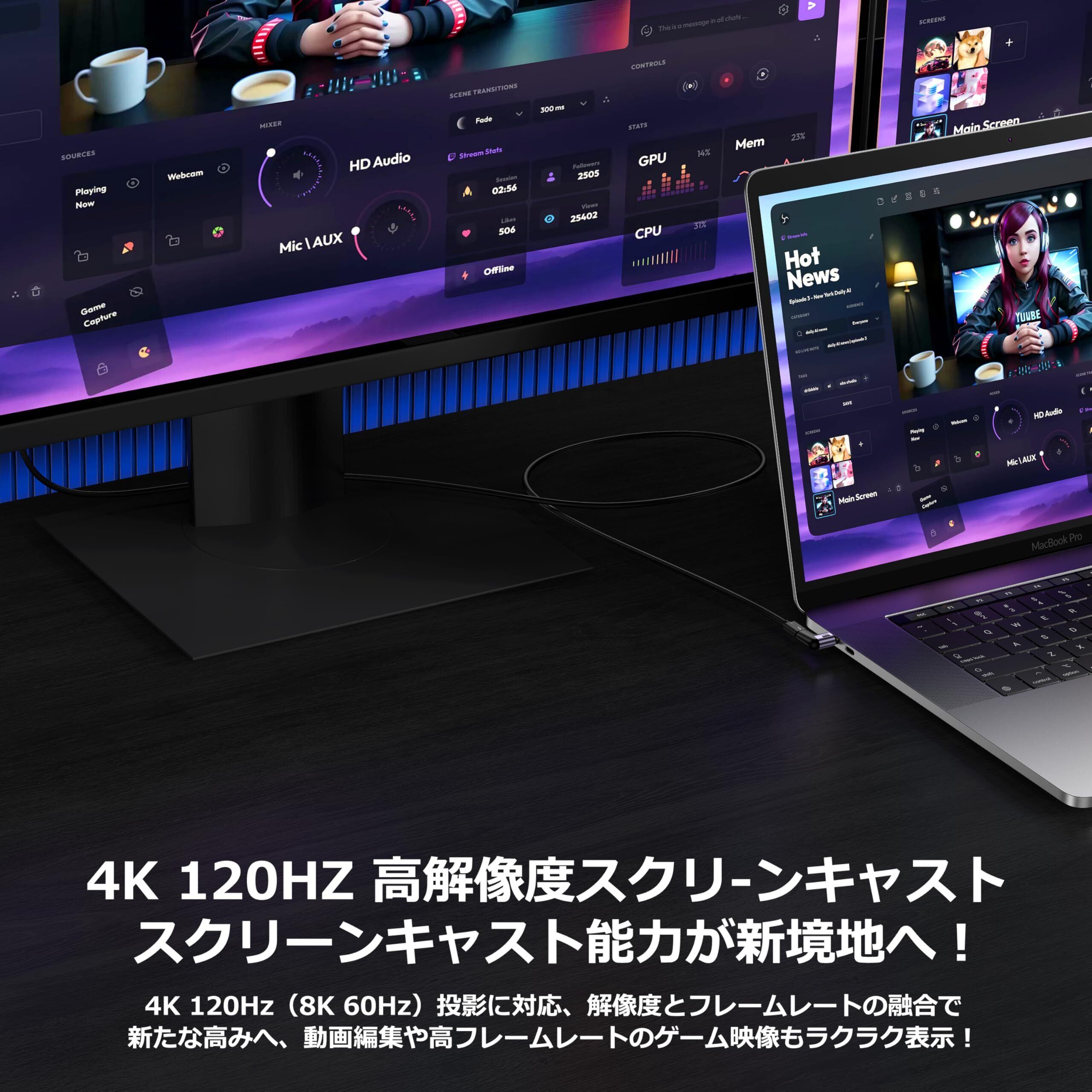 【8K映像出力】:このUSB Cアダプタは8K映像出力も8K@60Hz(4K@120Hz)をサポートします。旅行先、自宅、オフィスなどで充電、オーディオ、ビデオ、データ転送を楽しむことができます。