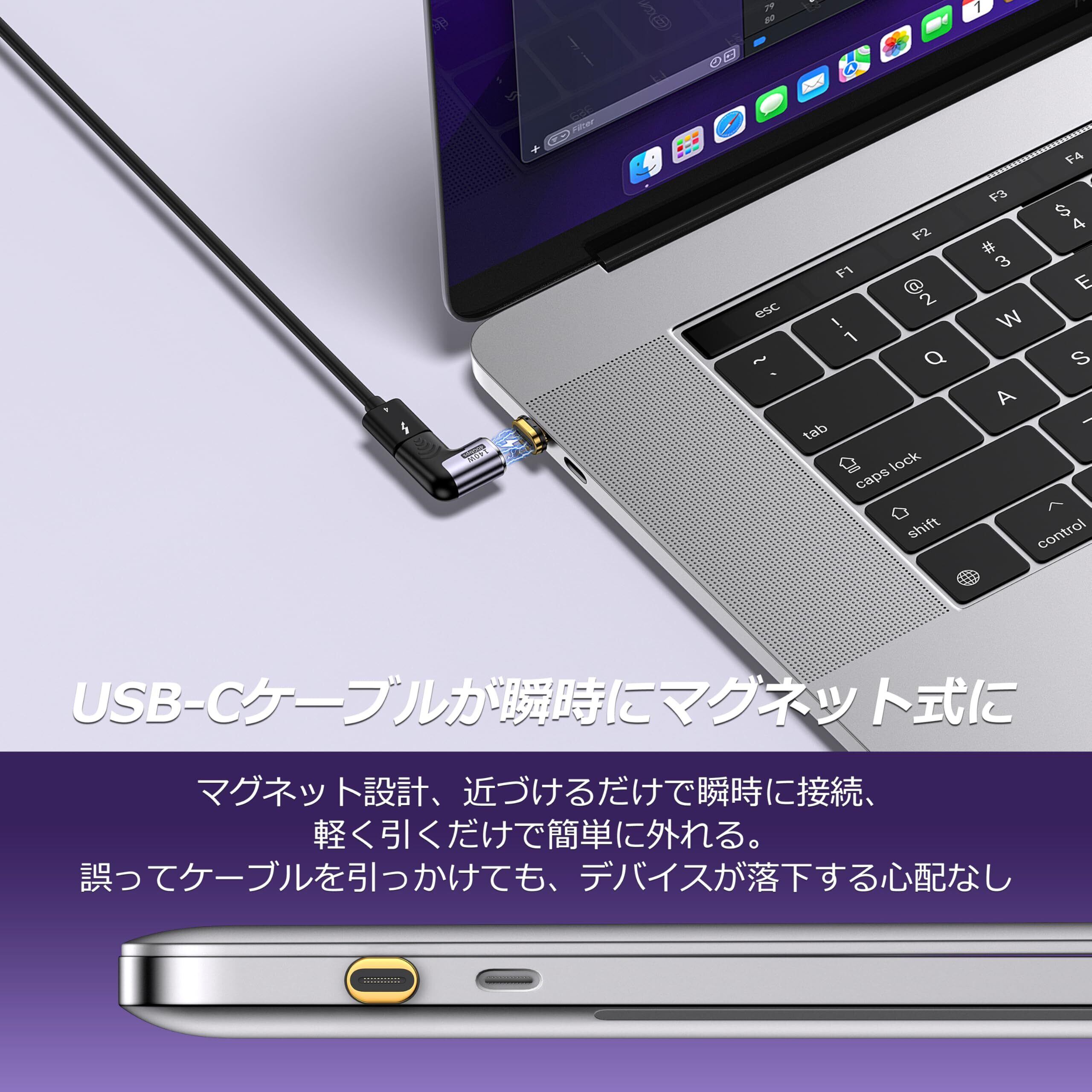 MUXER USB C マグネット アダプタ L字、40Gbps USB4高速データ転送、140W PD急速充電、4K 120Hz / 8K 60Hz HD映像信号伝送、USB4.0 Type-C マグネット、タイプCデバイス対応 (140Wアダプタ2個)