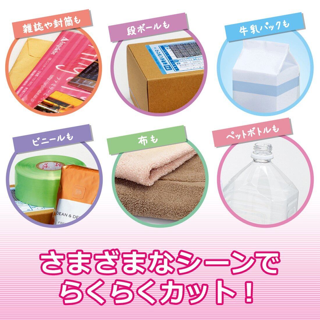 切れ味抜群で、厚紙や段ボール、布をカッティングに最適です。グリップも握りやすく、力を入れずに材料を切ることができ、さびにくく、耐久性に優れています。