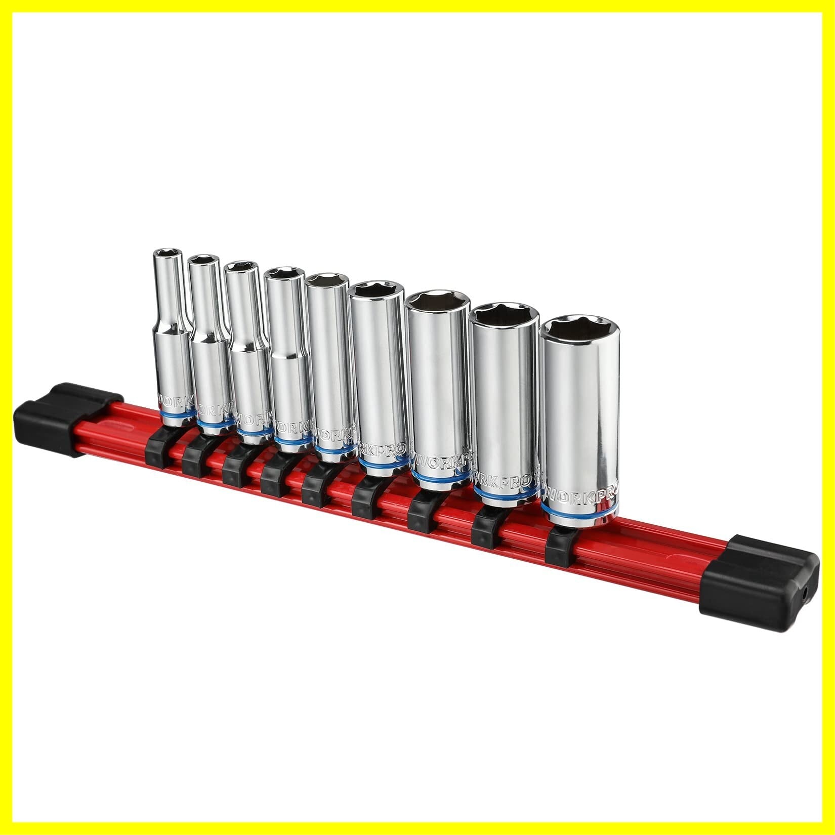 WORKPRO ディープソケットセット 差込角6.35mm 5 5.5 6 7 8 10 12 13 14mm 9点組 ホルダー付き 自動車修理