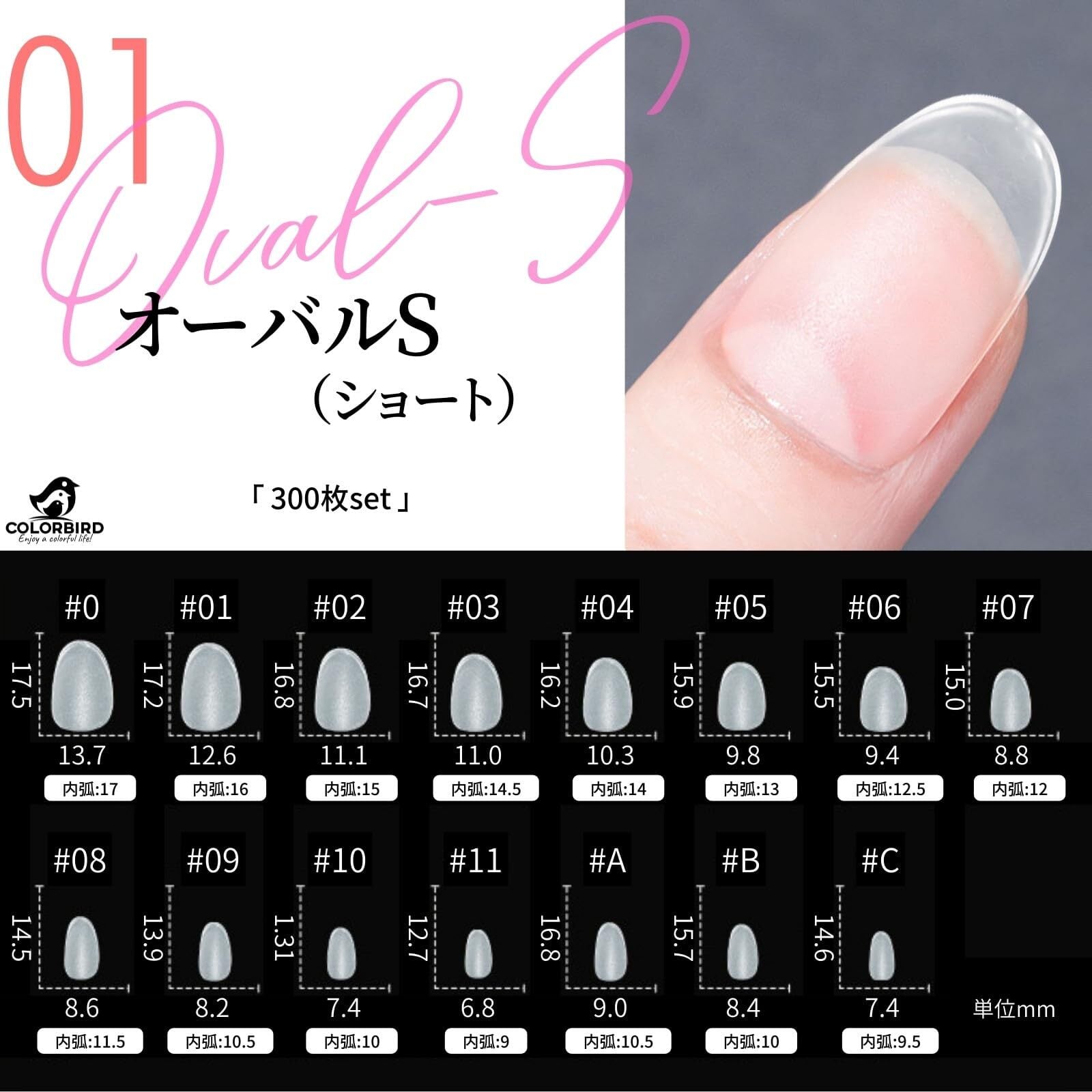 COLORBIRD ネイルチップ 超薄 ショート クリア サンディング 自然なフィット感 つけ爪 (オーバルS, 300pcs)