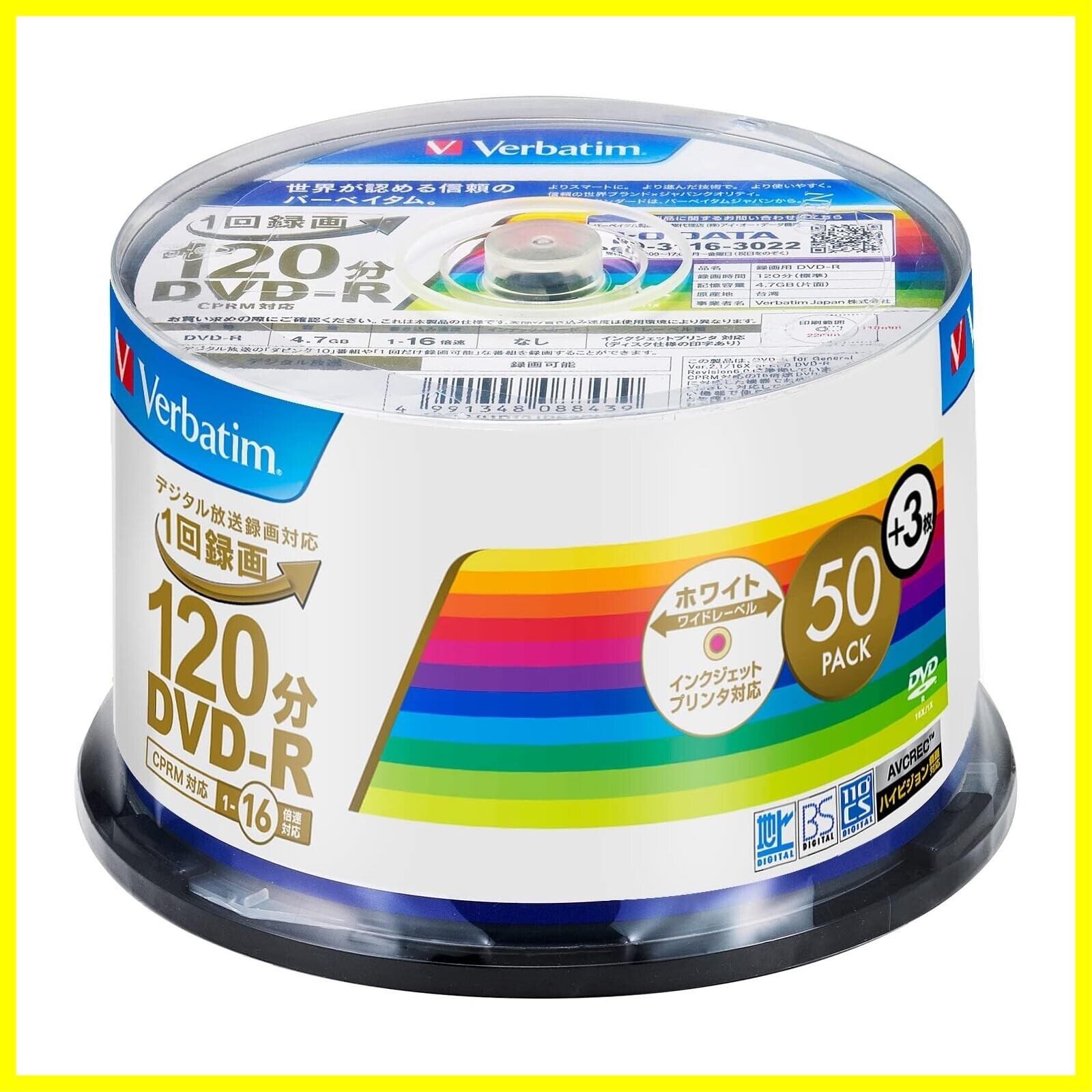 バーベイタム(Verbatim) 1回録画用 DVD-R CPRM 120分 【50枚+3枚増量パック】 インクジェットプリンタ対応 ホワイト片面1層 1-16倍速 VHR12JP53SV4