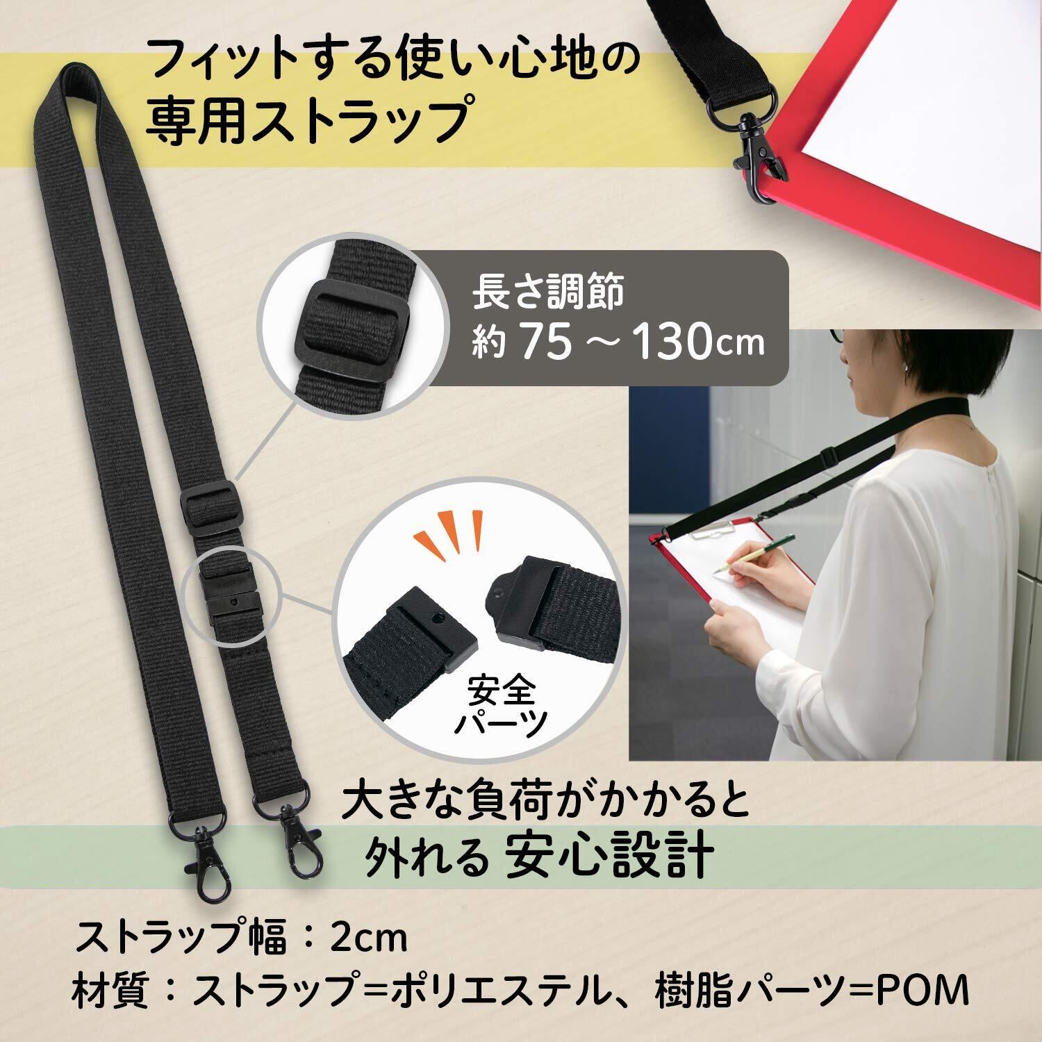 【セット内容】おりたためるクリップボードA4 レッド:1冊、専用ストラップ:1本