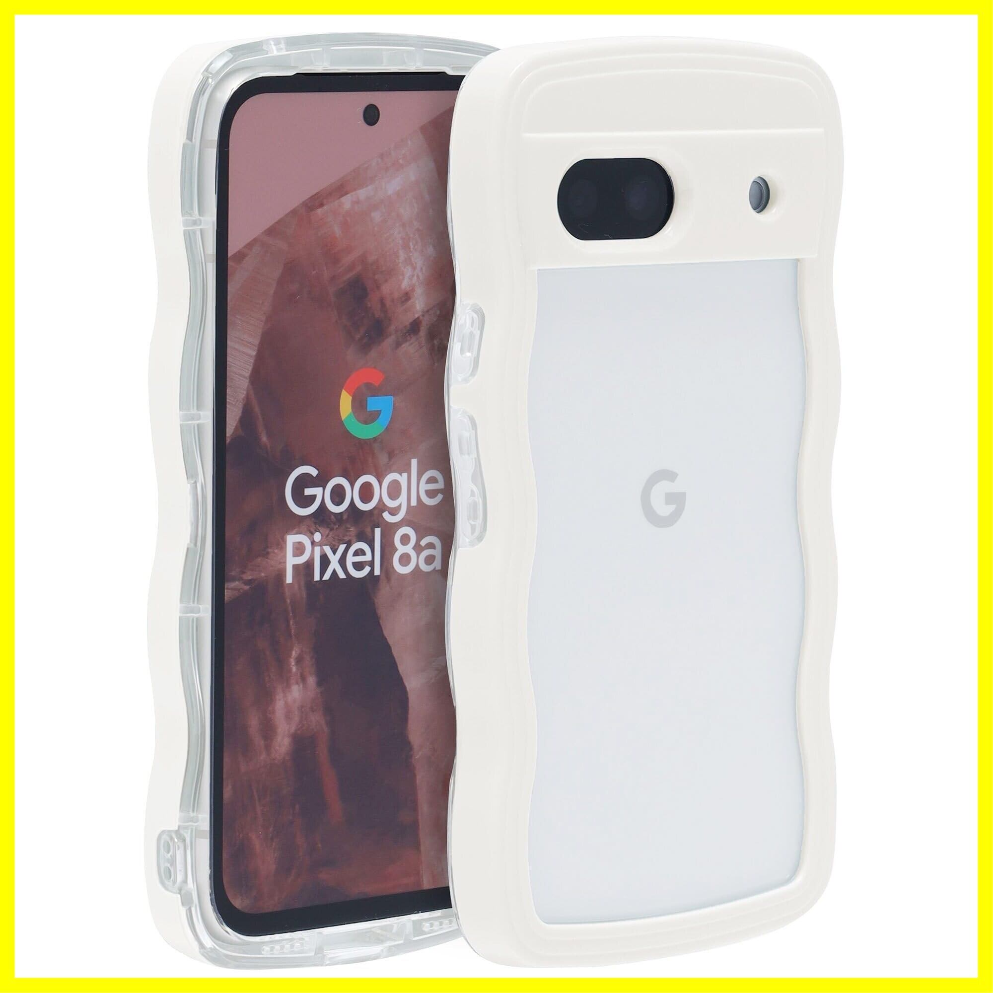 Google Pixel 8A ケース ウェーブ ピクセル 8a うねうね 人気 韓国 耐衝撃 超軽量 薄型 おしゃれ pixel8a なみなみ パステル 可愛い 透明 オタ活 推し活 (ホワイト, pixel8a)