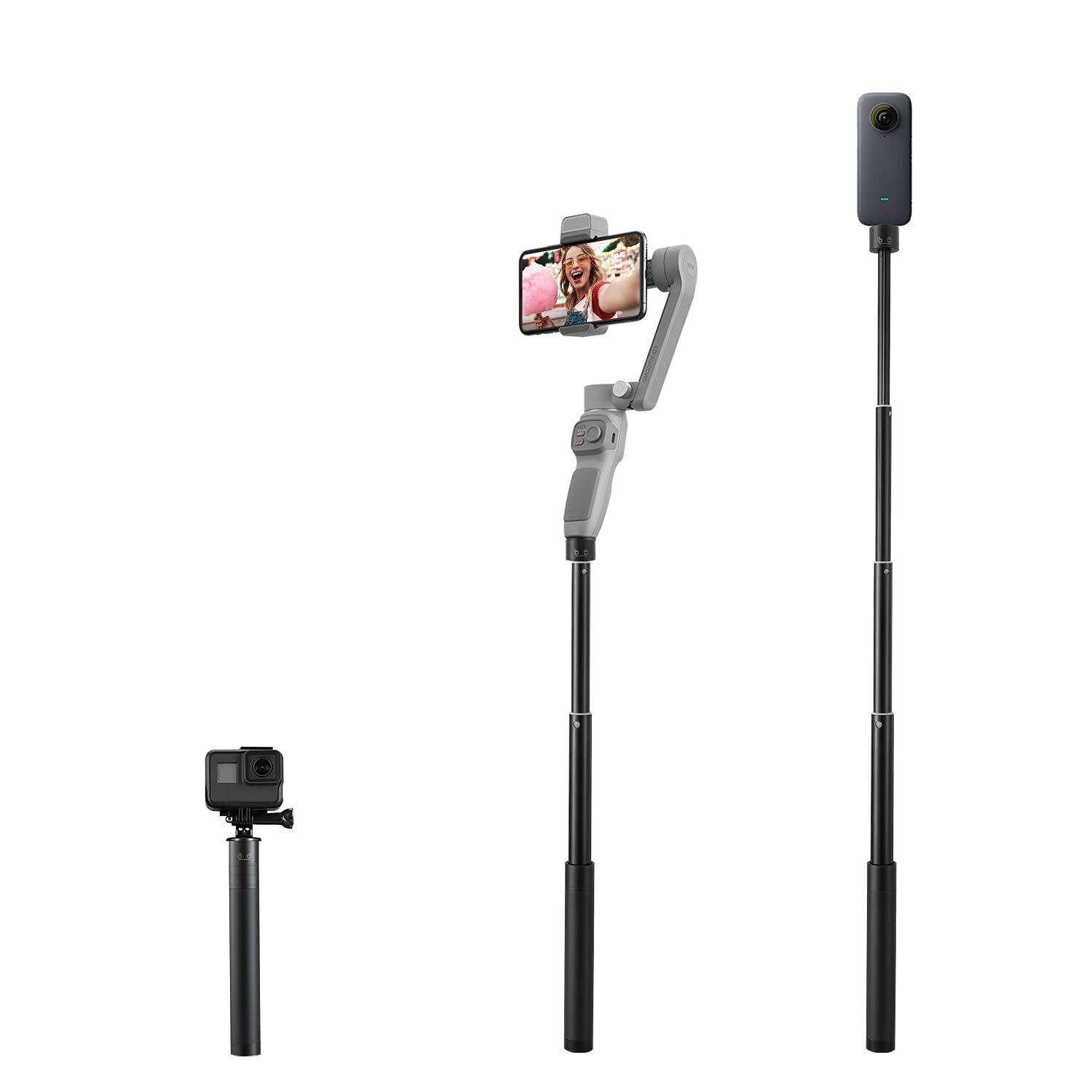 【ジンバル延長ポール】DJI OM 4 Osmo Mobile 3 2/Zhiyun Smooth 5 4 Q3/Feiyu Sgp/WG2/G5/Insta360 GO 2/Hohem 3軸スマートフォンジンバルスタビライザー用デザイン。 注意:ジンバル延長ポールにはカメラをトリガーするボタンはありません。