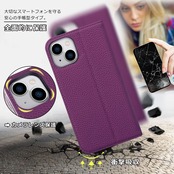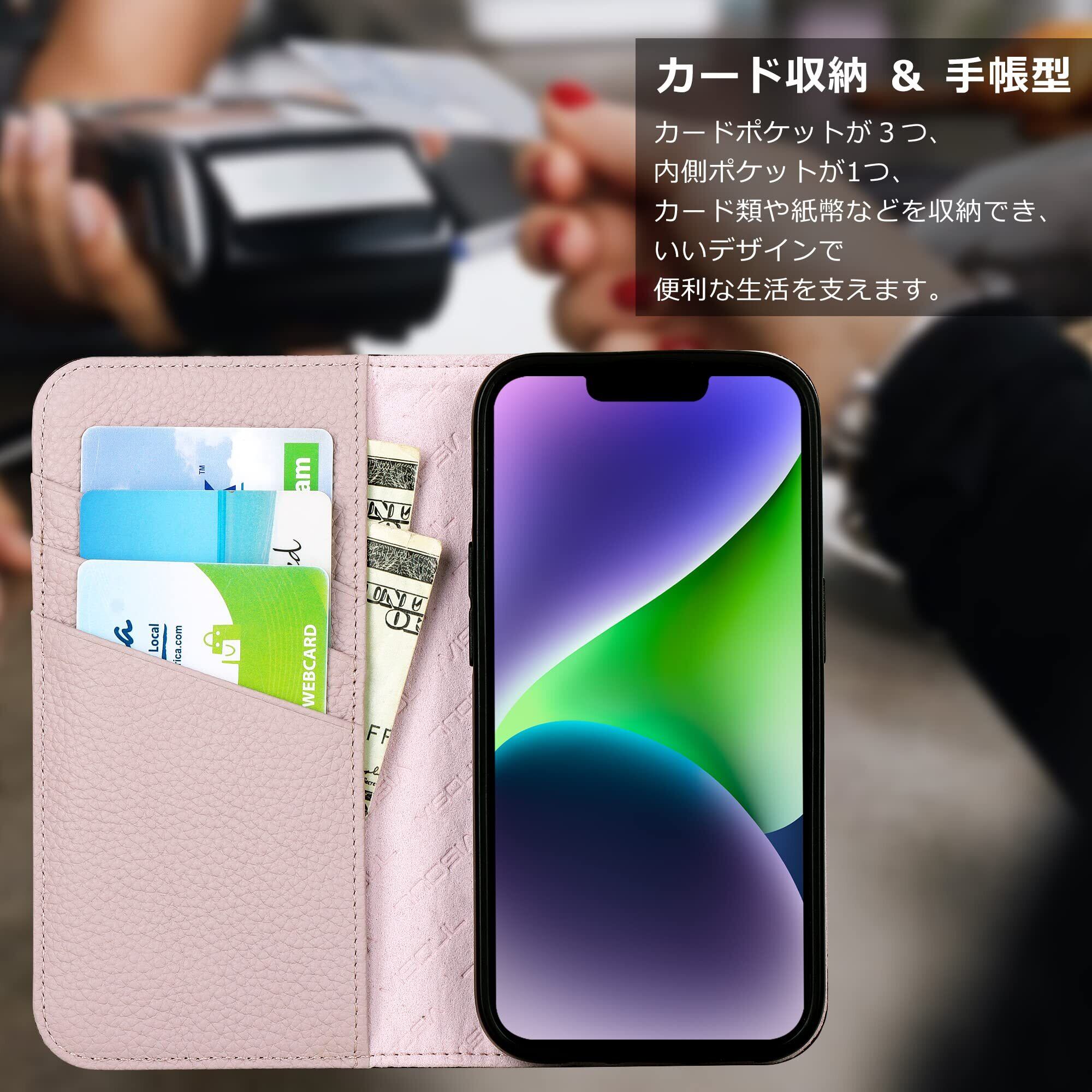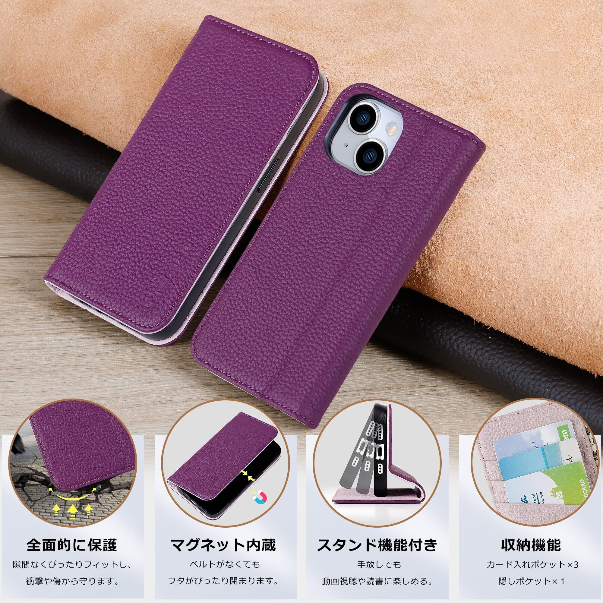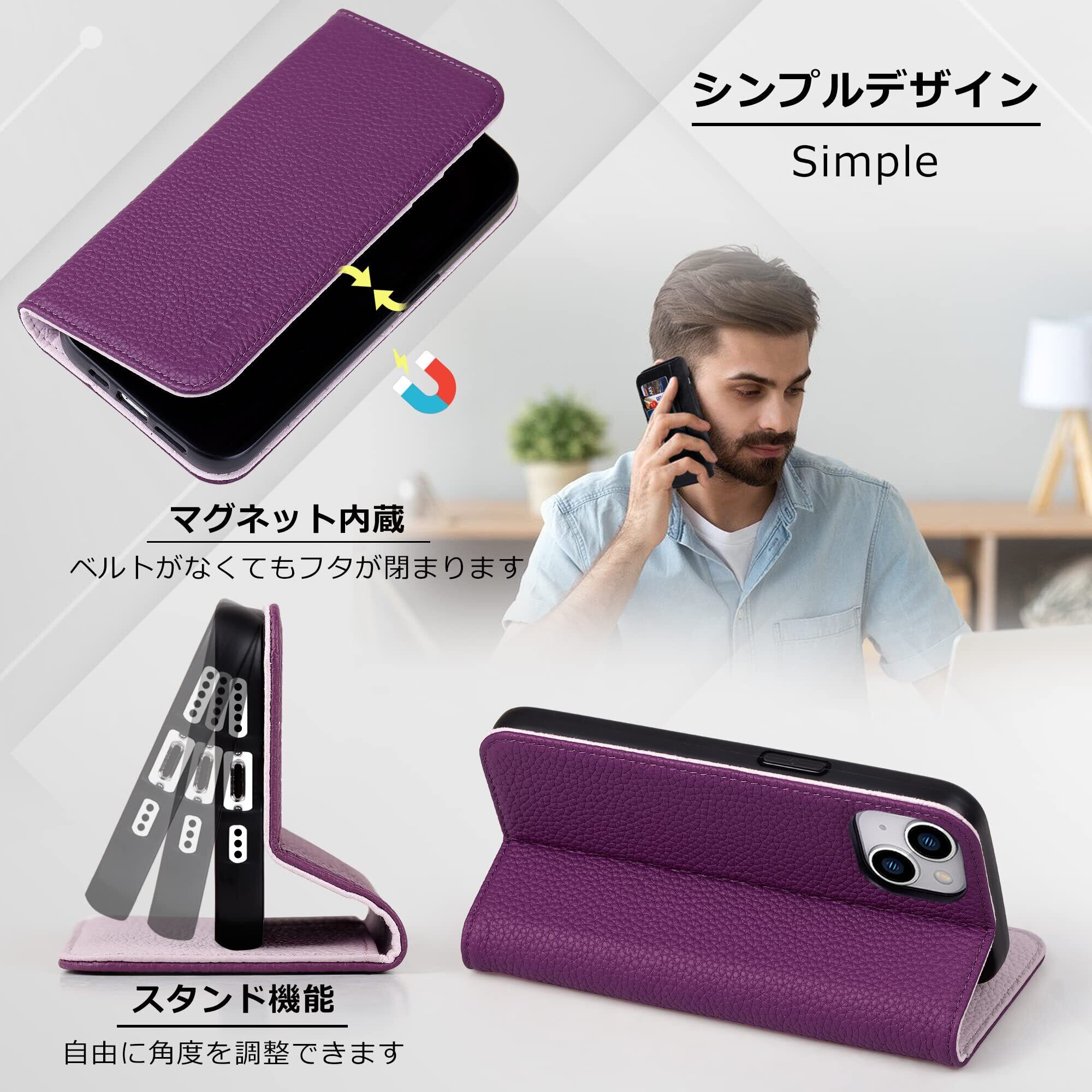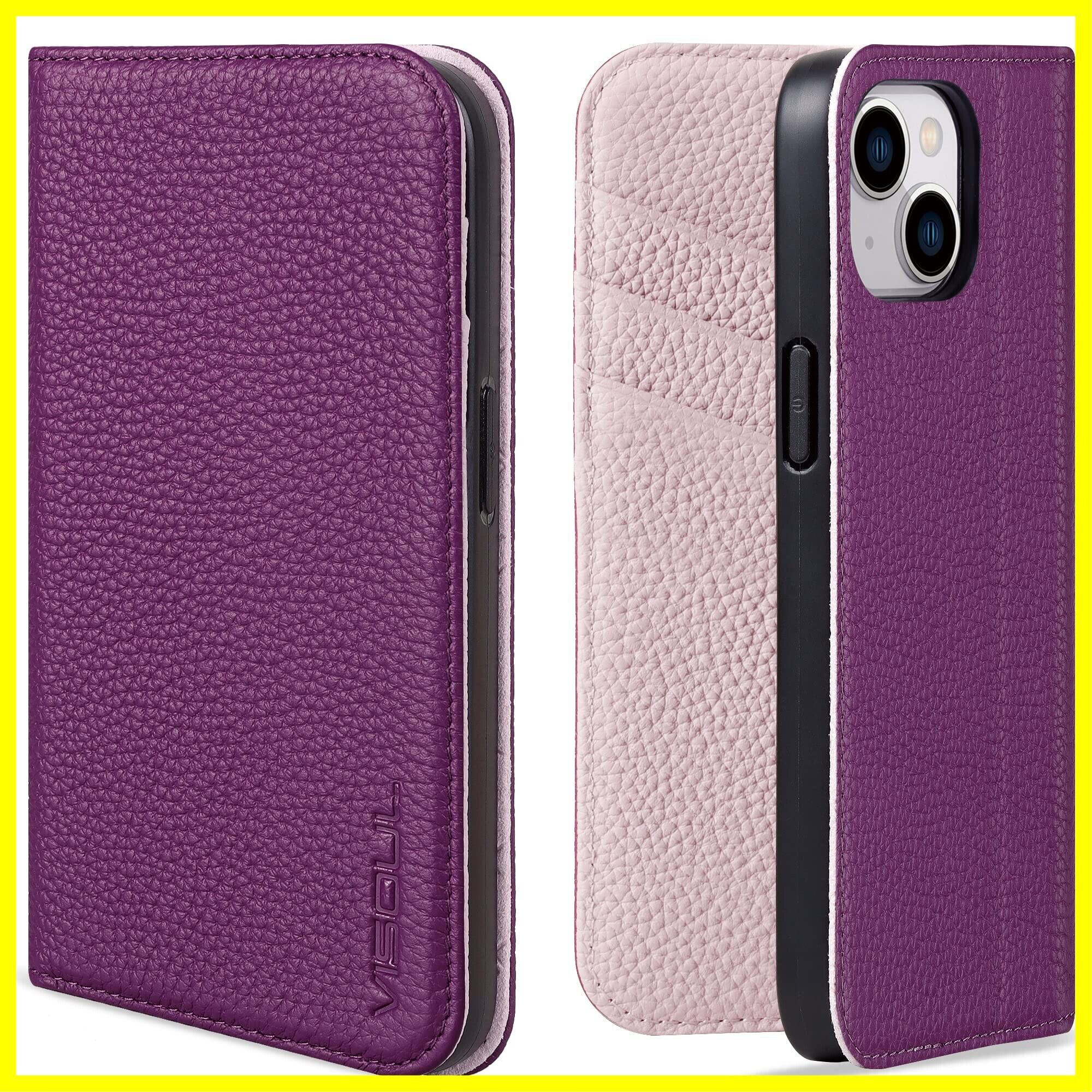 VISOUL iphone14 ケース 手帳型 本革 レザー アイフォン14 手帳型ケース カード収納 携帯ケース 全面保護 柔軟なTPU素材 マグネット式 スタンド機能付き スマホケース アイホン14対応 6.1インチ iphone 14 パープル ピック