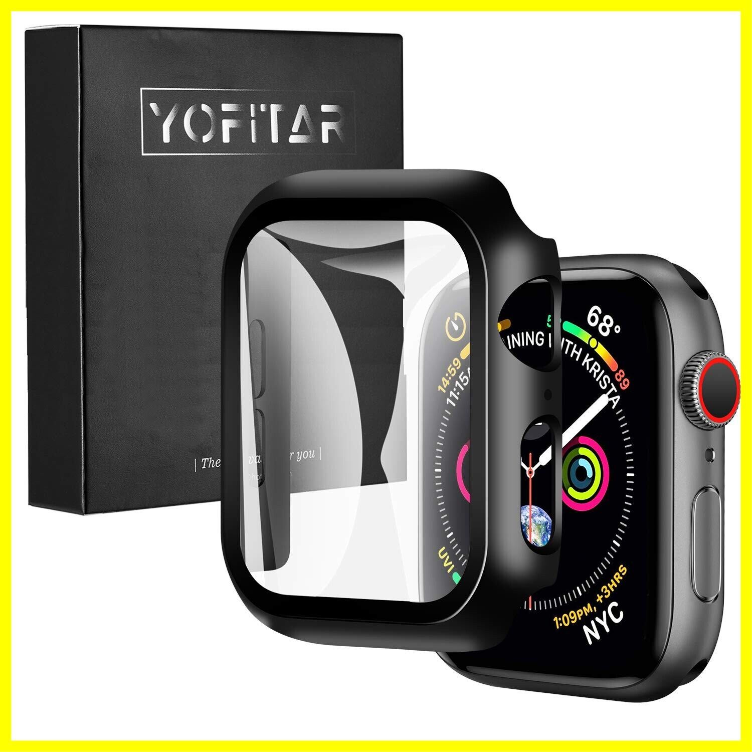 YOFITAR Apple Watch 用 ケース Apple Watch Ultra 2/Ultra/11/10/9/8/7/SE3/SE2/6/SE/5/4/3/2/1 アップルウォッチ保護カバー ガラスフィルム 一体型 PC素材 全面保護 超薄型 装着簡単 耐衝撃 高透過率 指紋防止 傷防止 (44mm,ブラック)