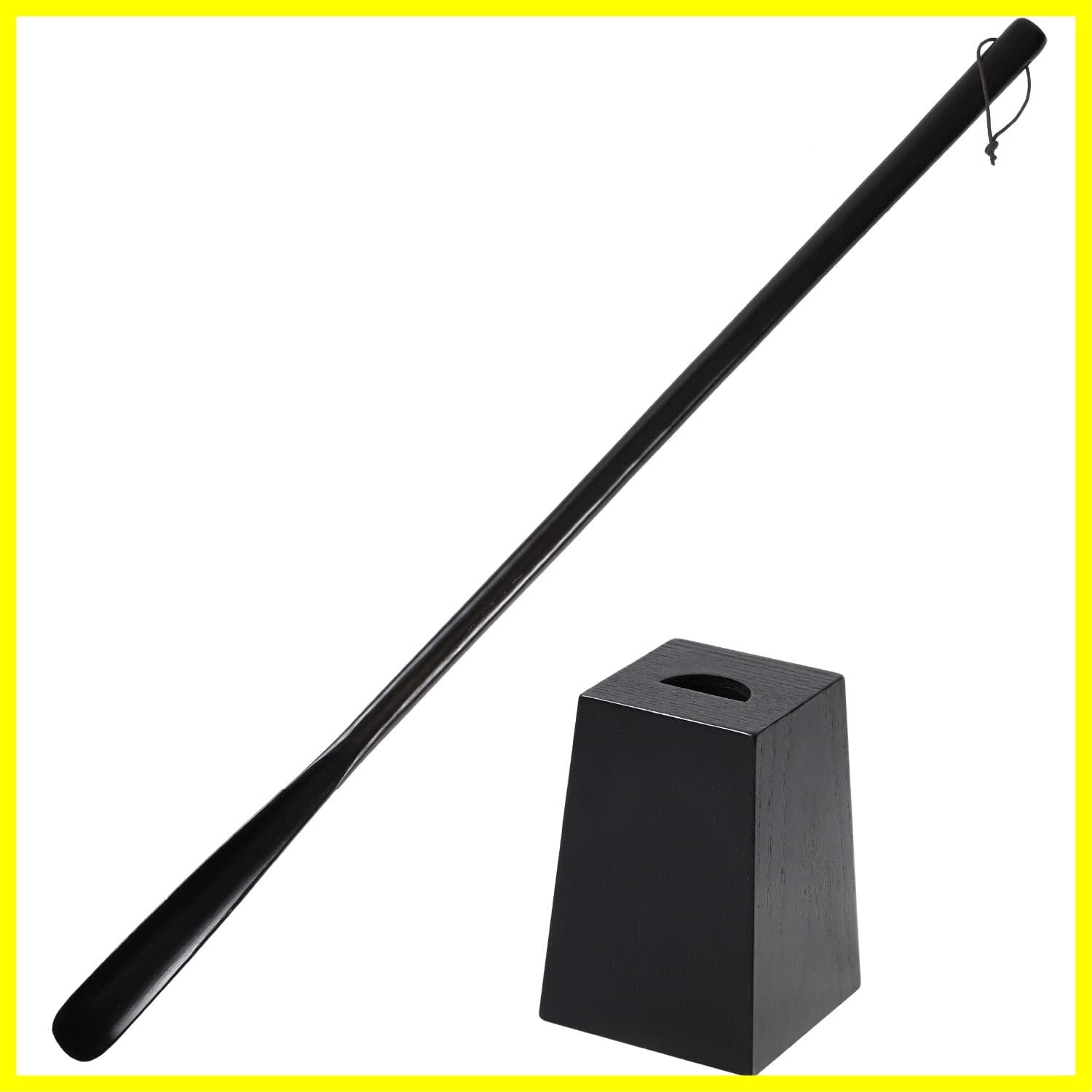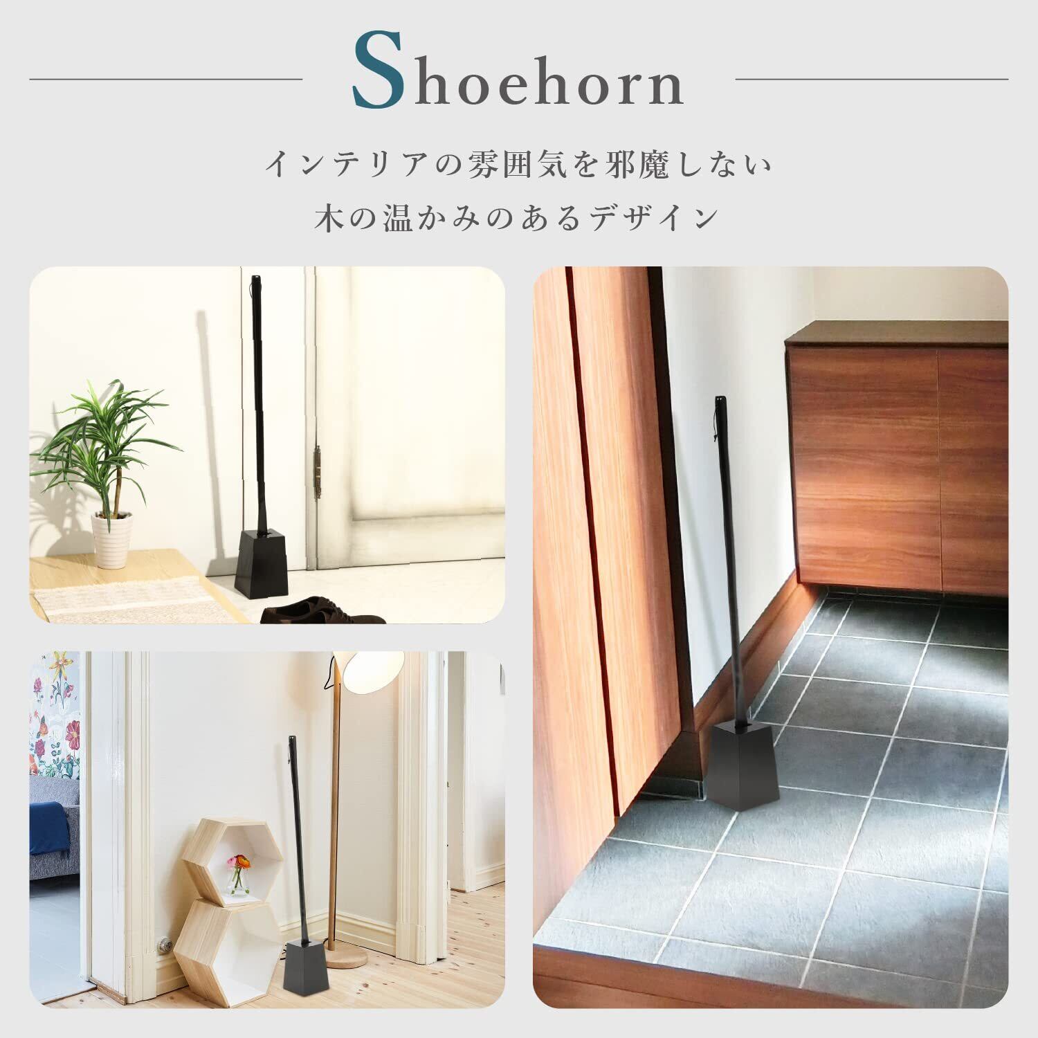 [kicoriya] 靴べら ベラ ロング スタンド 台付き 木製 長い 75cm おしゃれ クロス付属 ブラック 黒
