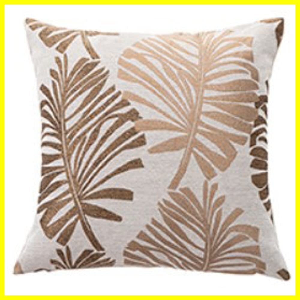 クッションカバー 45×45㎝ おしゃれ 北欧 背当て ナチュラル グリーン柄 ジャガード織 SweetBaku (ゴールド)