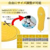 【様々な利用シーン】インソールの人間工学設計は悪い歩行癖を効果的。柔らかい素材は衝撃を吸収して,立ち仕事や外歩きの多い方、スポーツにまで幅広く使用して頂けます!底の薄い靴、スニーカー、ランニングシューズ、ブーツ、ショートブーツ、革靴、安全靴などにも適します。