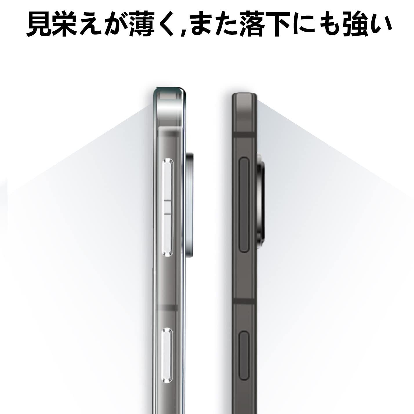 【全面保護】カメラレンズの周りに段差をつけて擦り傷を防ぎます.スマホへの傷つけを防止します.また、カバーの各コーナーを強化し、衝撃を最小限に抑えます。平らな場所に置いても画面やケースの背面がおいた場所に触れることはなく、傷を最小限に抑えることができます。