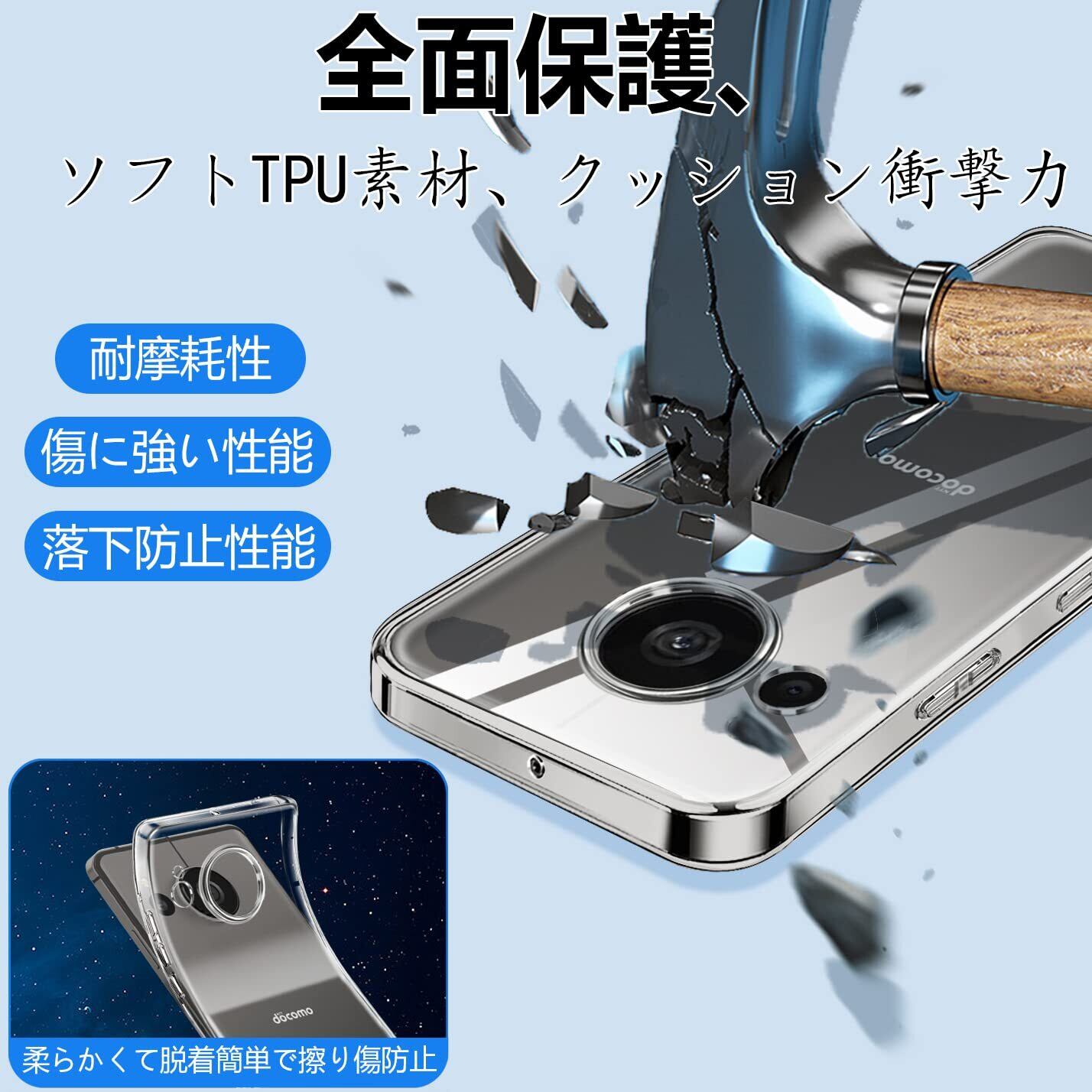 【TPU素材】AQUOS Sense7 Plus ケース クリア スマートフォン専用保護カバー 。TPU素材を採用。柔軟性が高く着脱が簡単で変形しにくく、ベタつかず適度な柔らかさで触り心地が良い。