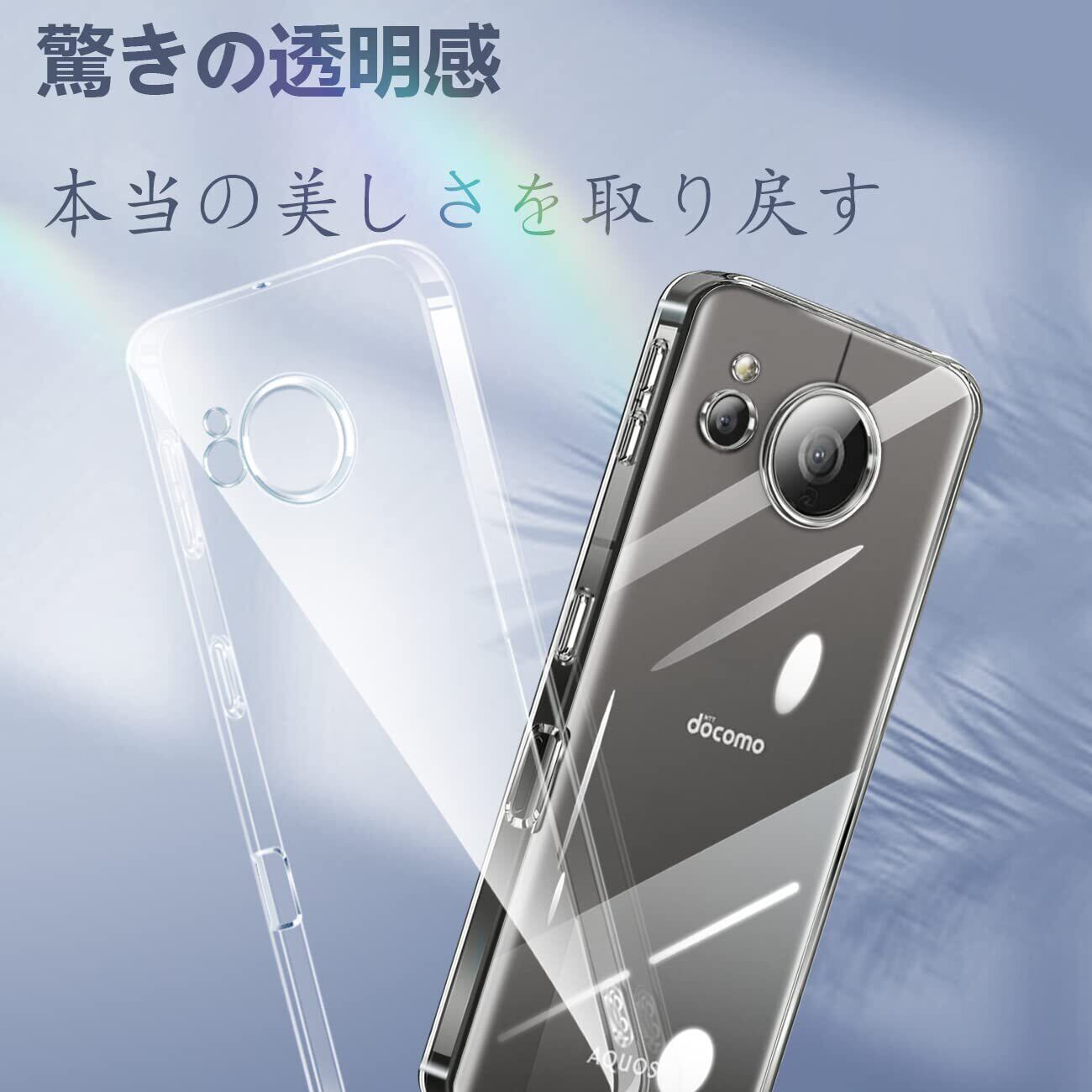 【高透過率】背面透明度が高く、本体の鮮やかな色をそのまま映し出すことができ、。携帯電話本体の美しさを完璧に見せます。まるでケースを着けていないかのような澄み切った透明感もあり、見た目から手触りまで全ての一体感を実現しました。
