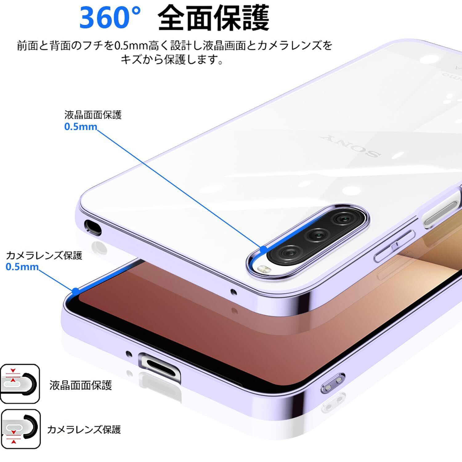Xperia 10 V ケース クリア SO-52D SOG11 カバー スマホケース 軽量 透明 耐衝撃 スリム TPU 薄型 擦り傷防止 パープル メッキ加工 ストラップホール付き エクスペリア10 V ケース 薄紫