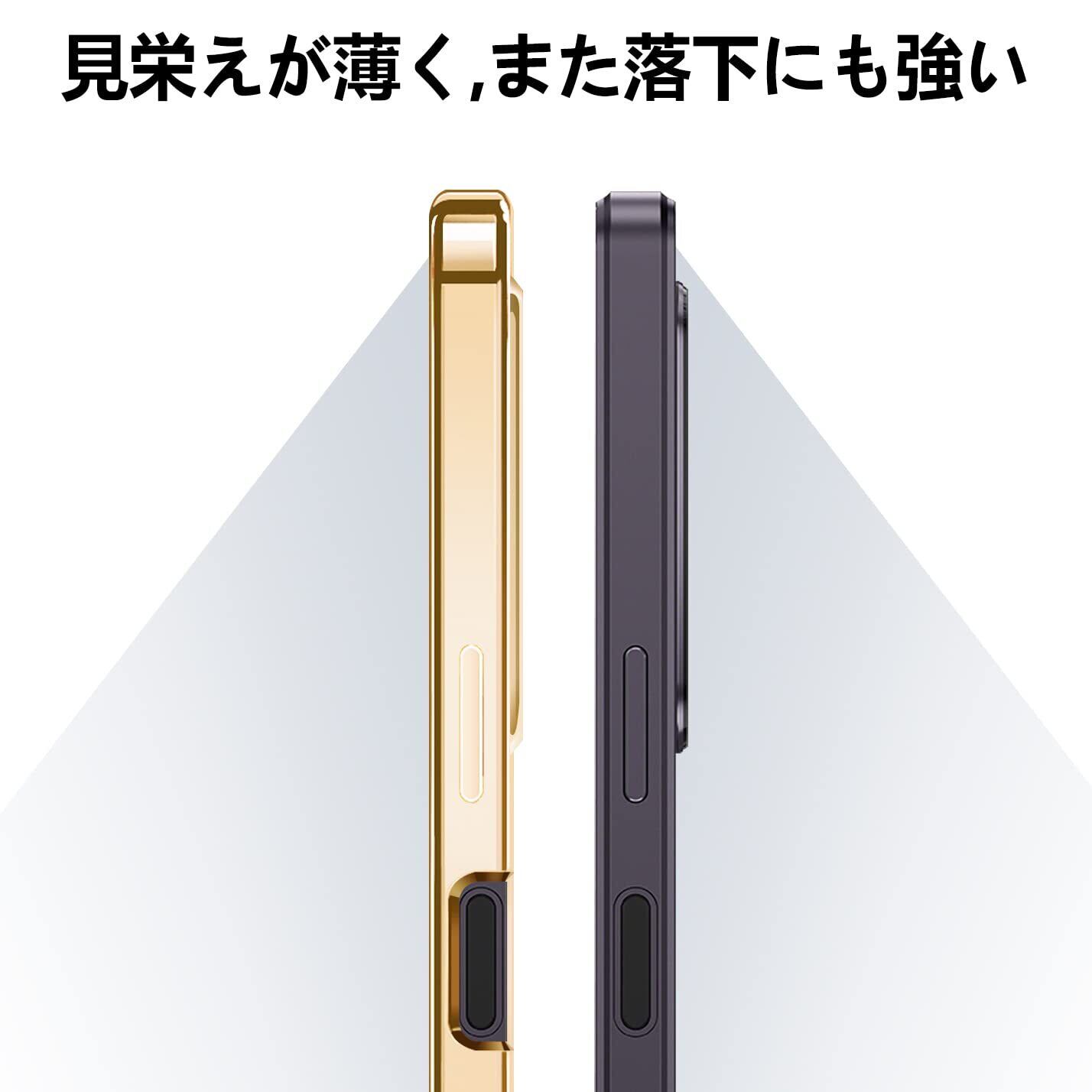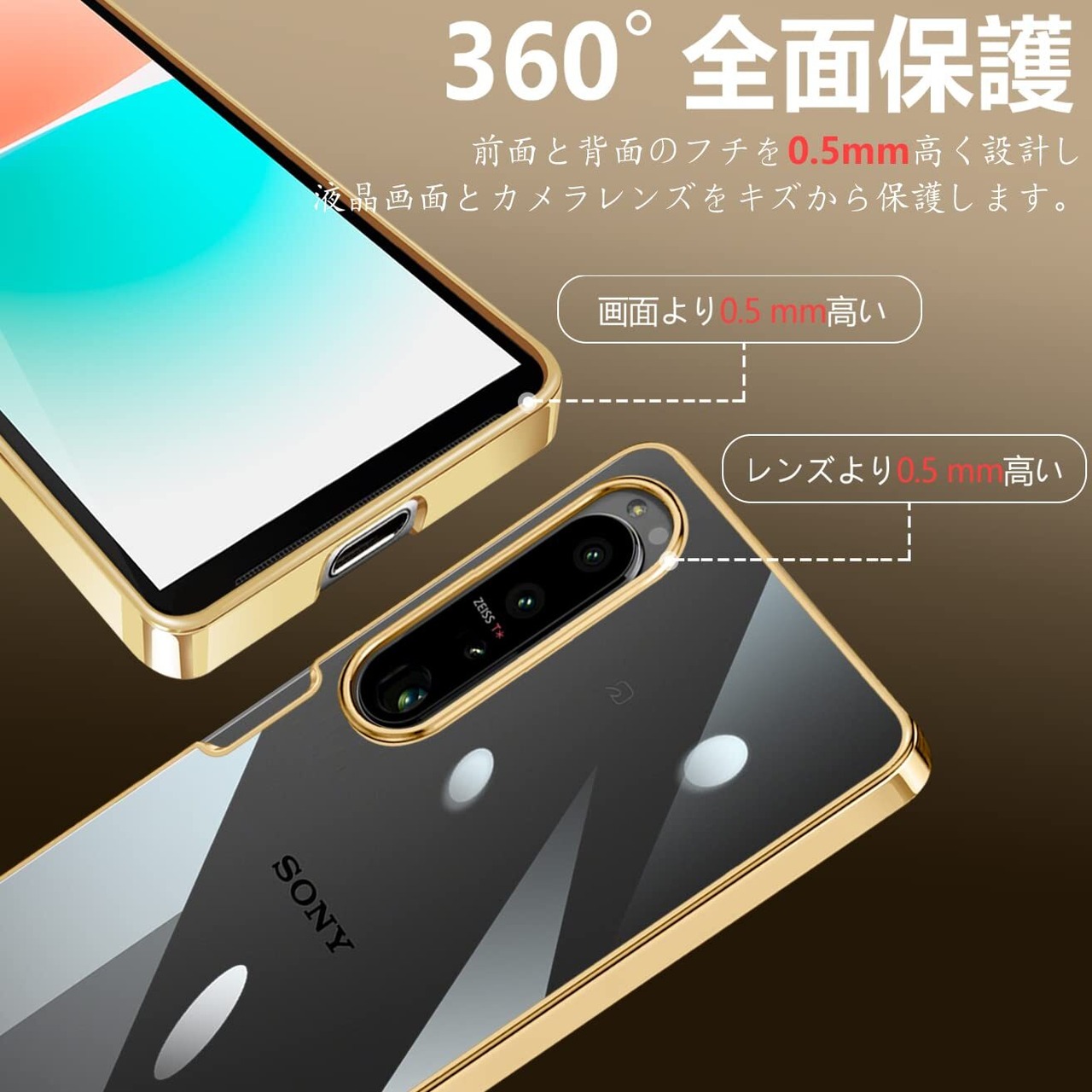 Sony Xperia 1 IV ケース クリア SO-51C SOG06 透明 ガバー エクスペリア1IV スマホケース 耐衝撃 TPU 薄型 スリム 擦り傷防止 黄変防止 メッキ加工 ストラップホール付き(ゴールド)