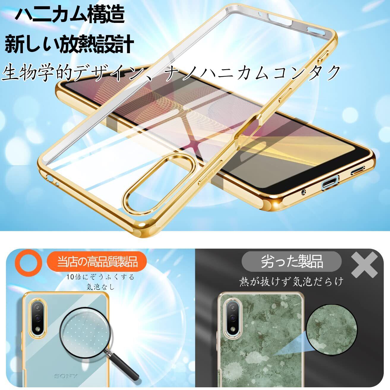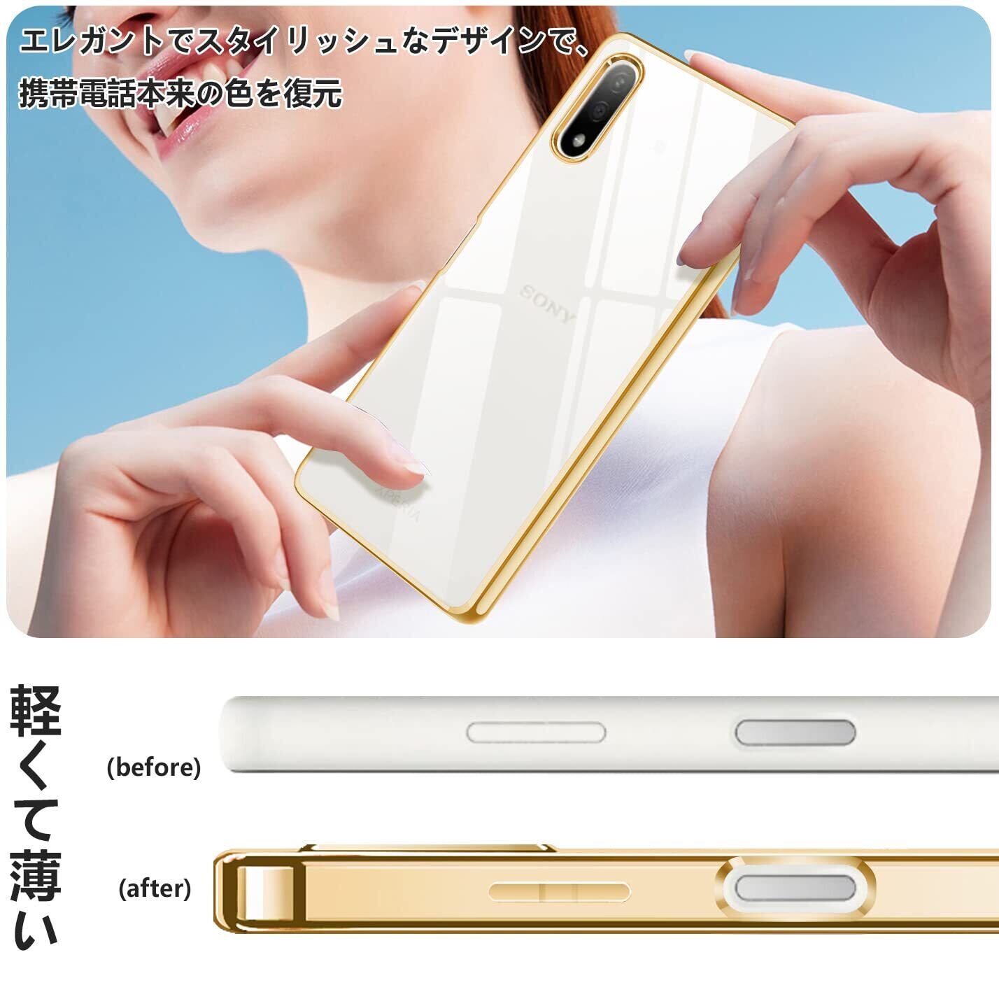 Xperia ACE II ケース クリア SONY Xperia ace2 SO-41B カバー 耐衝撃 透明 スマホケース ソフト TPU メッキ加工 エスクペリア ストラップホール付き 超軽量 (ゴールド)