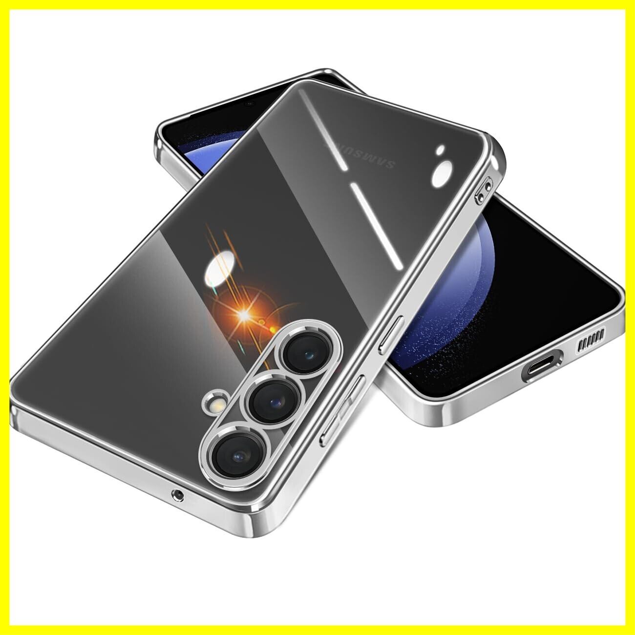 【FULEEYUHN】Samsung Galaxy S23FE ケース クリア ギャラクシー S23FE カバー 透明 TPU素材 耐衝撃 薄型 軽量 SCG24 対応 韓国 ファッション スマホケース メッキ加工 黄変防止 人気 ストラップホール付き ワイヤレス充電対応(シルバー)