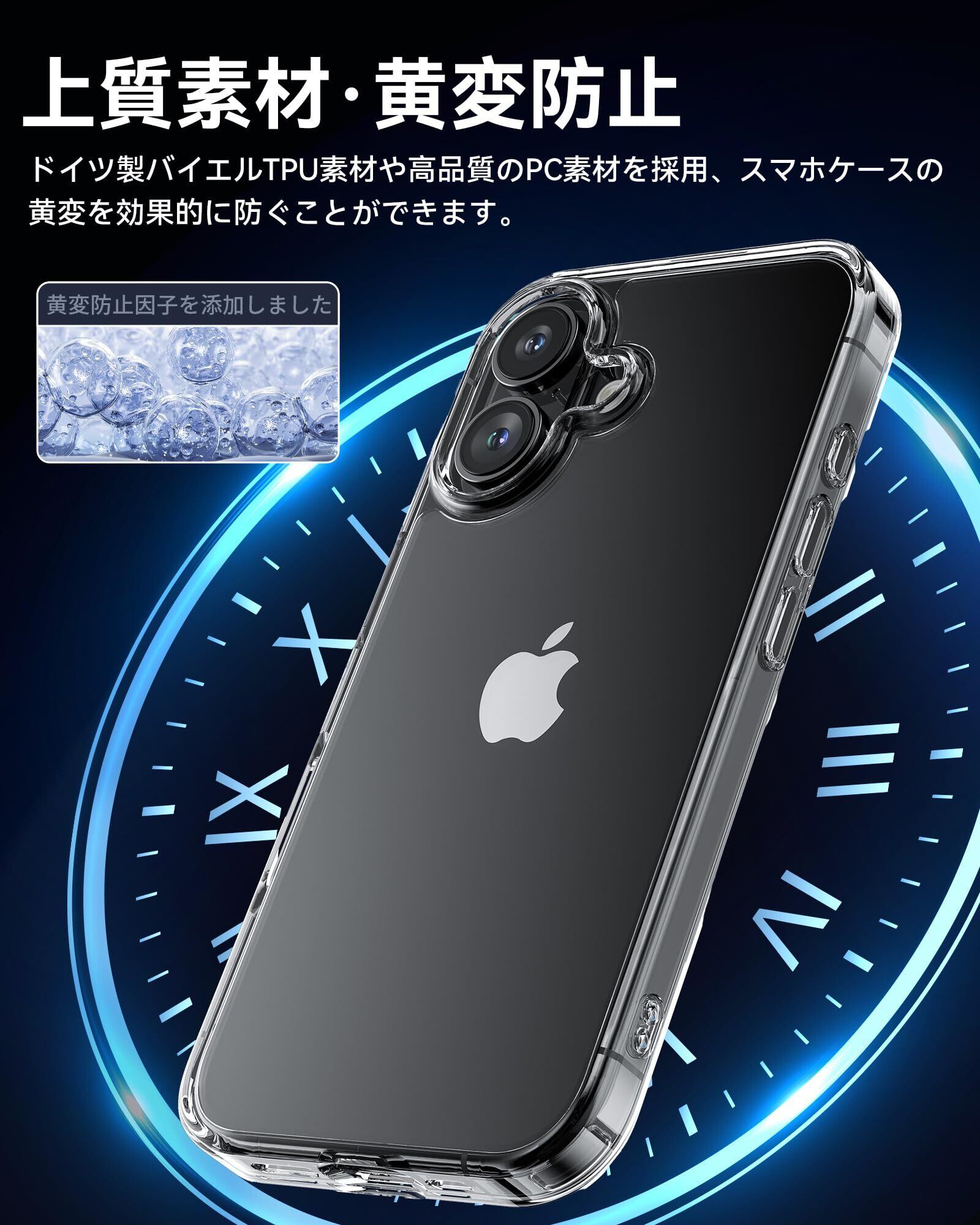 【黄変防止強化材質】高品質PC素材とドイツ製のバイエルTPU素材を使用し、スマホの美しさを損なうことなく、スマホ本来の美しさ保ちます。TPUポリマーに添加されたUV剤が黄変防止性能を大幅に向上させ、長期間使用しても光沢と透明感を維持することができます!また、ワイヤレス充電にも対応しているので、急速充電も可能です。あなたの生活をより便利にまた快適にします。