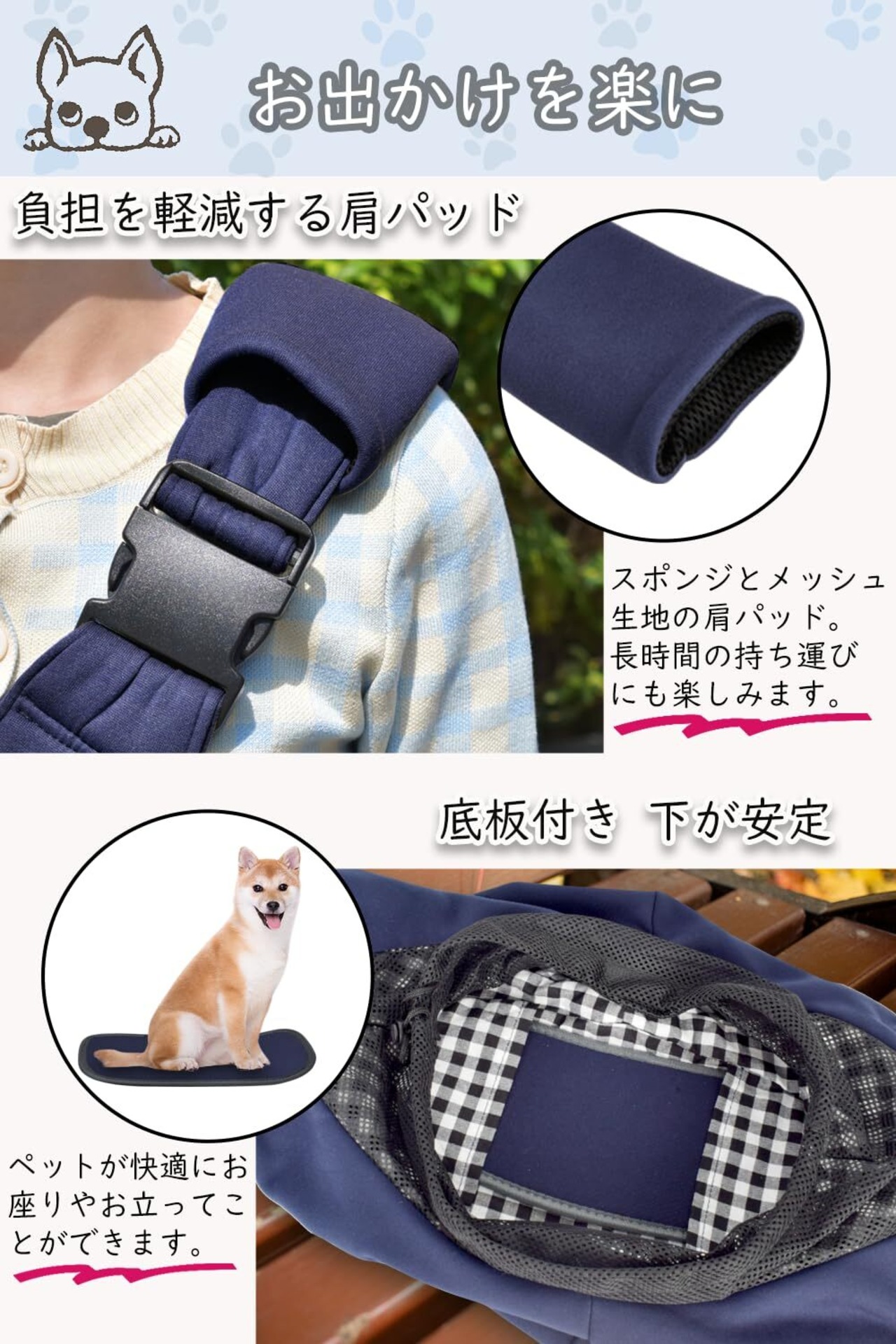 【軽量で扱いやすい生地】触り心地のいいポリエステル素材で作られており、中の裏地はギンガムチェックになって、ペットにハンモックみたいな感じられ中小型犬スリングです。リバーシブルなので服装によってもかえれます。底板のカバーが外せるので洗濯できて、スリング本体は水洗いや洗濯機洗いできます。