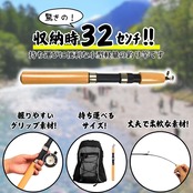 全長75cmのコンパクトロッドです。収納時は約32cmまで縮まります。持ち運びに便利な小型軽量の釣り竿です。
