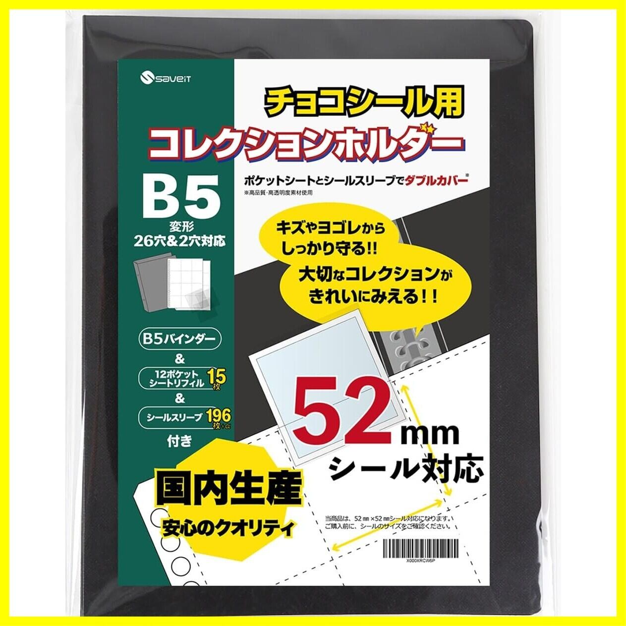【プラスチック製だから水や汚れに強い!】 紙製のバインダーのさまざまな問題を解決するために、PP製のバインダー(ファイル)が最適と判断し、今回採用しました。PP製ファイルですと紙製と比較して汚れも付きにくく、角や端もほつれにくいので、大切なコレクションを守るためには最適な材質と言えることでしょう。大切なシールが「汚れにくい」「曲がりにくい」「そのまま保存」に最適なバインダーです。 【商品サイズ】 当商品は、52㎜シール専用となります。52㎜×52㎜より大きいシールは使用できませんので予めご了承ください。サイズが不明な場合には必ずご購入前にご自身のシールの長さを計ってお確かめください。サイズ・・・バインダー:縦280mm×横212mm 背幅25㎜・12ポケットシート:縦251mm×横191mm(26穴&2穴対応)・シールスリーブ:縦54mm×横54mm