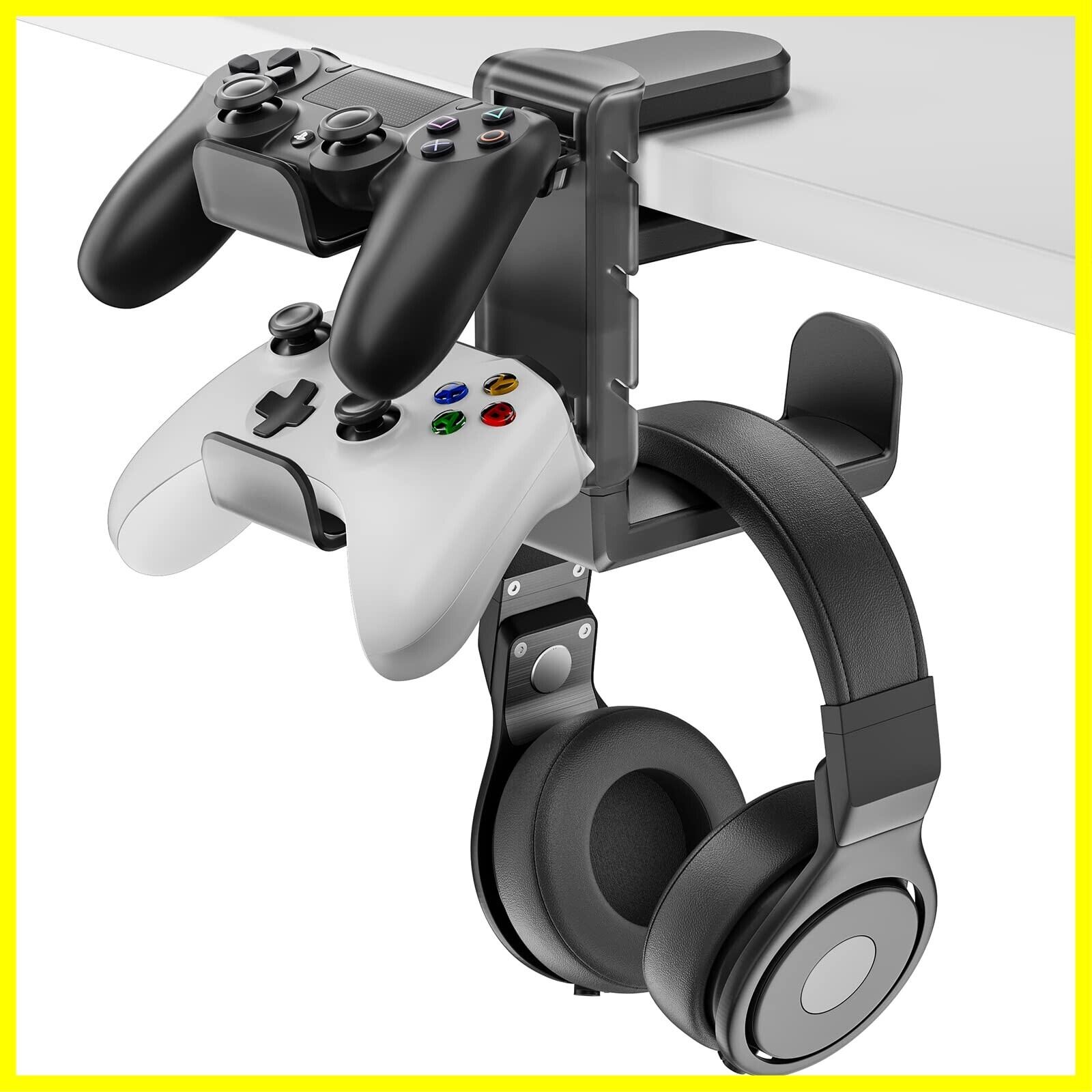 【3台同時収納・省スペース】:ヘッドホン1台とコントローラー2台を同時に収納できる非常に便利なスタンドです。置き場所に困ることはなく、よく使うゲーム関連の物を一箇所に集中して収納でき、使う時も取りやすく、狭いデスク周りもスッキリ整理し、デスクスペースを有効活用でき、快適なゲーム時間を楽しめます。