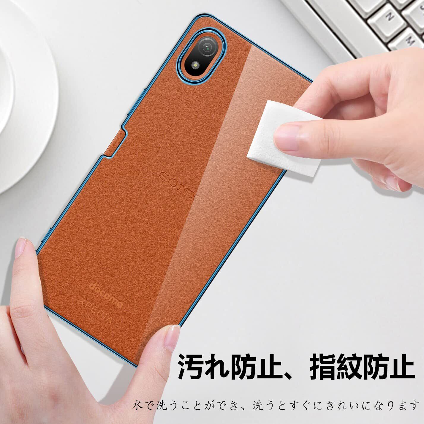 Sony Xperia Ace III ケース クリア SO-53C SOG08 透明 ガバー エクスペリアACE3 スマホケース 耐衝撃 TPU 薄型 スリム 擦り傷防止 黄変防止 メッキ加工 ストラップホール付き(ブルー)