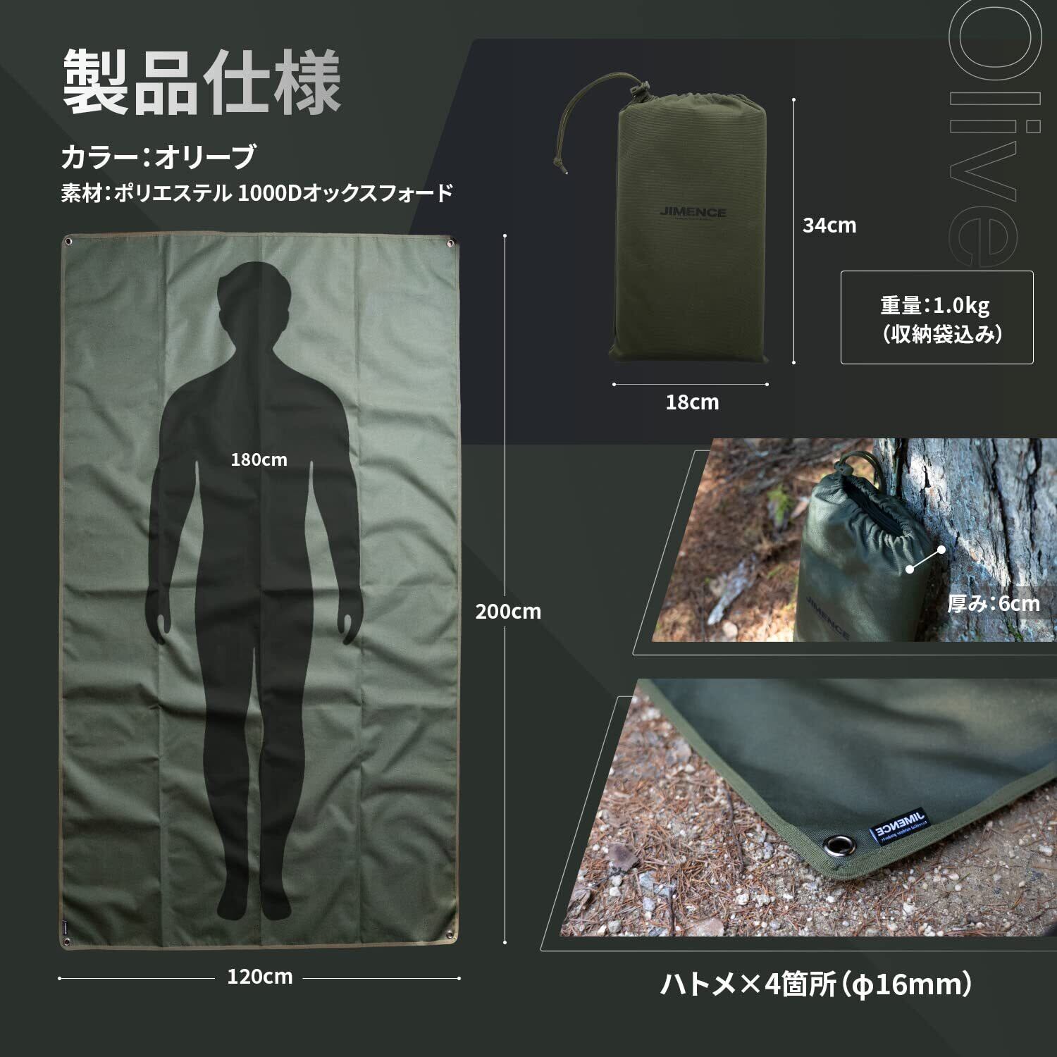 JIMENCE(ジーメンス) グランドシート 厚手 1000D 120×200cm 防水 両面撥水 収納袋付き ソロ用 (オリーブ)