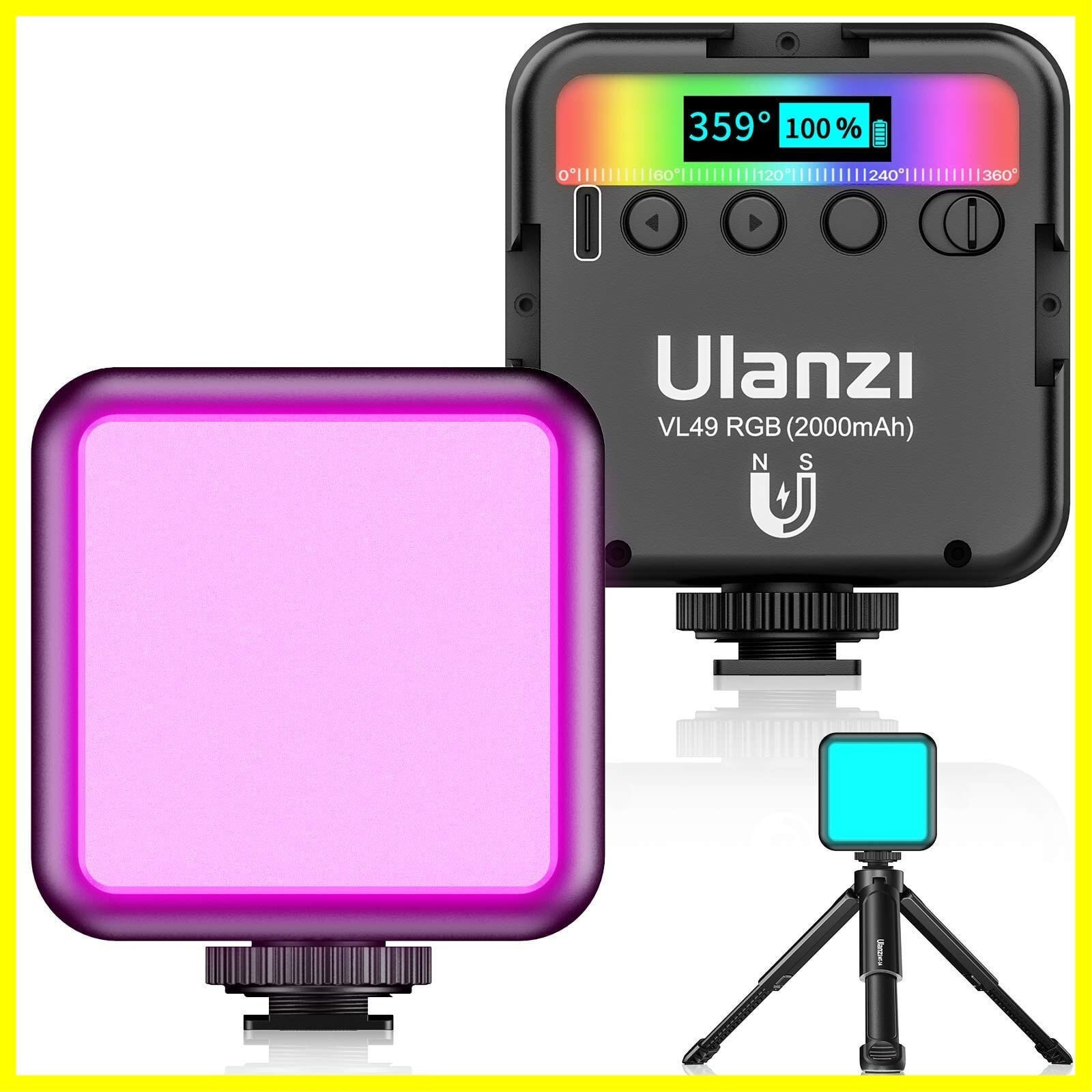 最新 Ulanzi VL49 RGB撮影ライト+三脚付き LEDビデオライト 卓上スタンド 359色RGBモード 明るさ調整が可能 9000k明るい白色光 2000mAh USB充電式 iphone/Gopro/Osmo Pocket/Samsung/Nikon/Canon/Sony/アクションカメラに適用