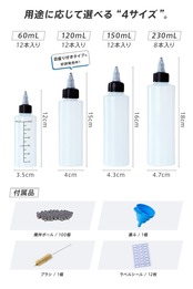ドロッパーボトルは120mL、150mL、230mLの3サイズから選択可能で用途に合わせてお選びいただけます。