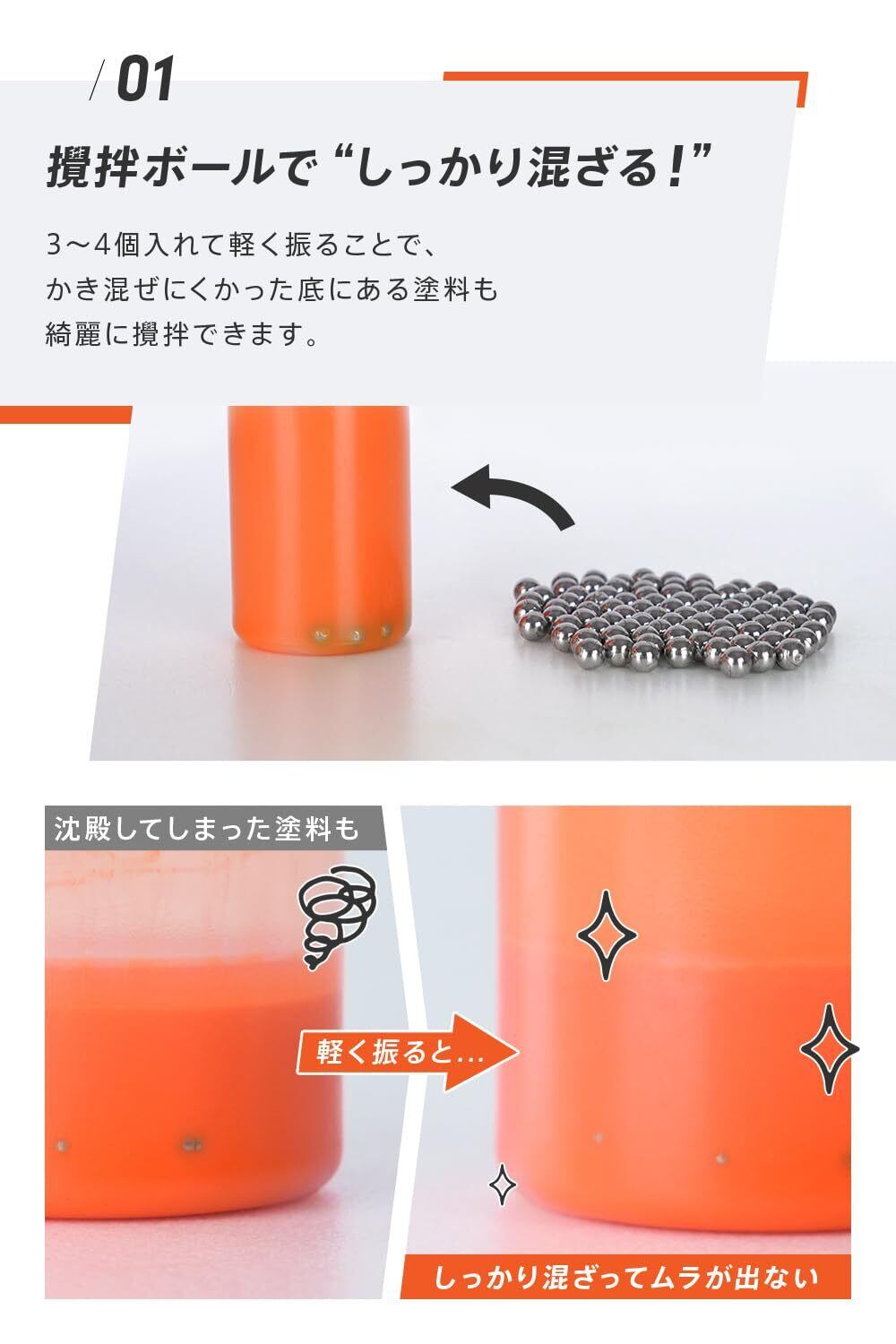 【ふたを回して簡単に開閉が可能で塗料の出方を調整できます!】塗料の使用量に応じて調整してください。 塗料を使用でよくある塗料が混ざらない悩み、撹拌ボールで解決します!ドロッパーボトルを軽く振るだけで塗料を簡単に混ぜることができます!