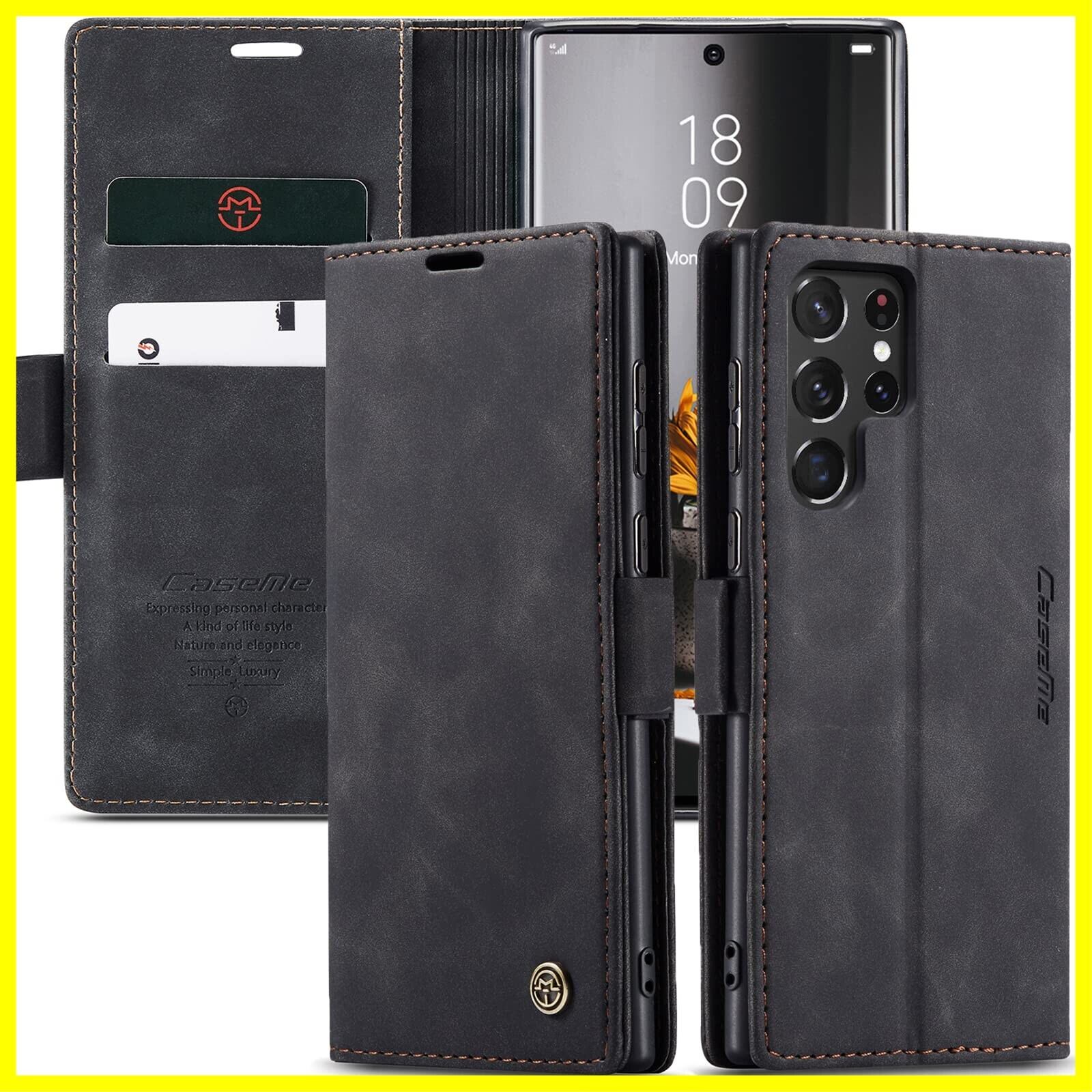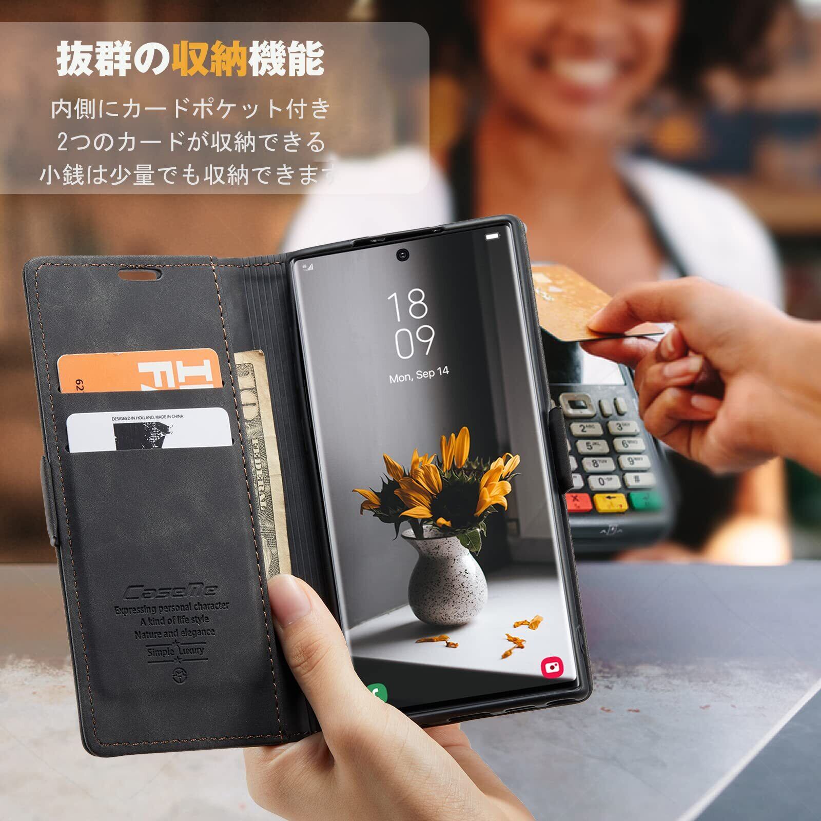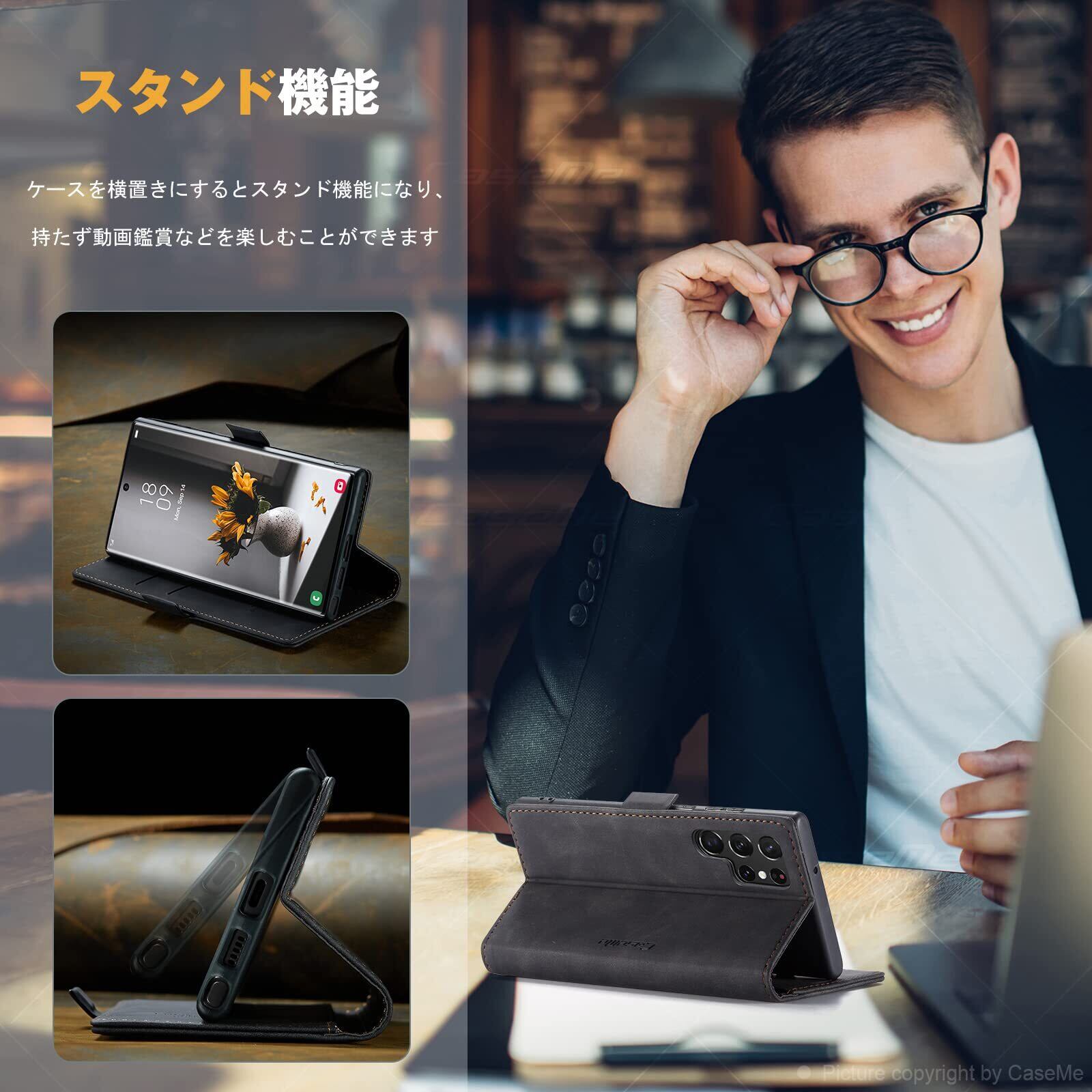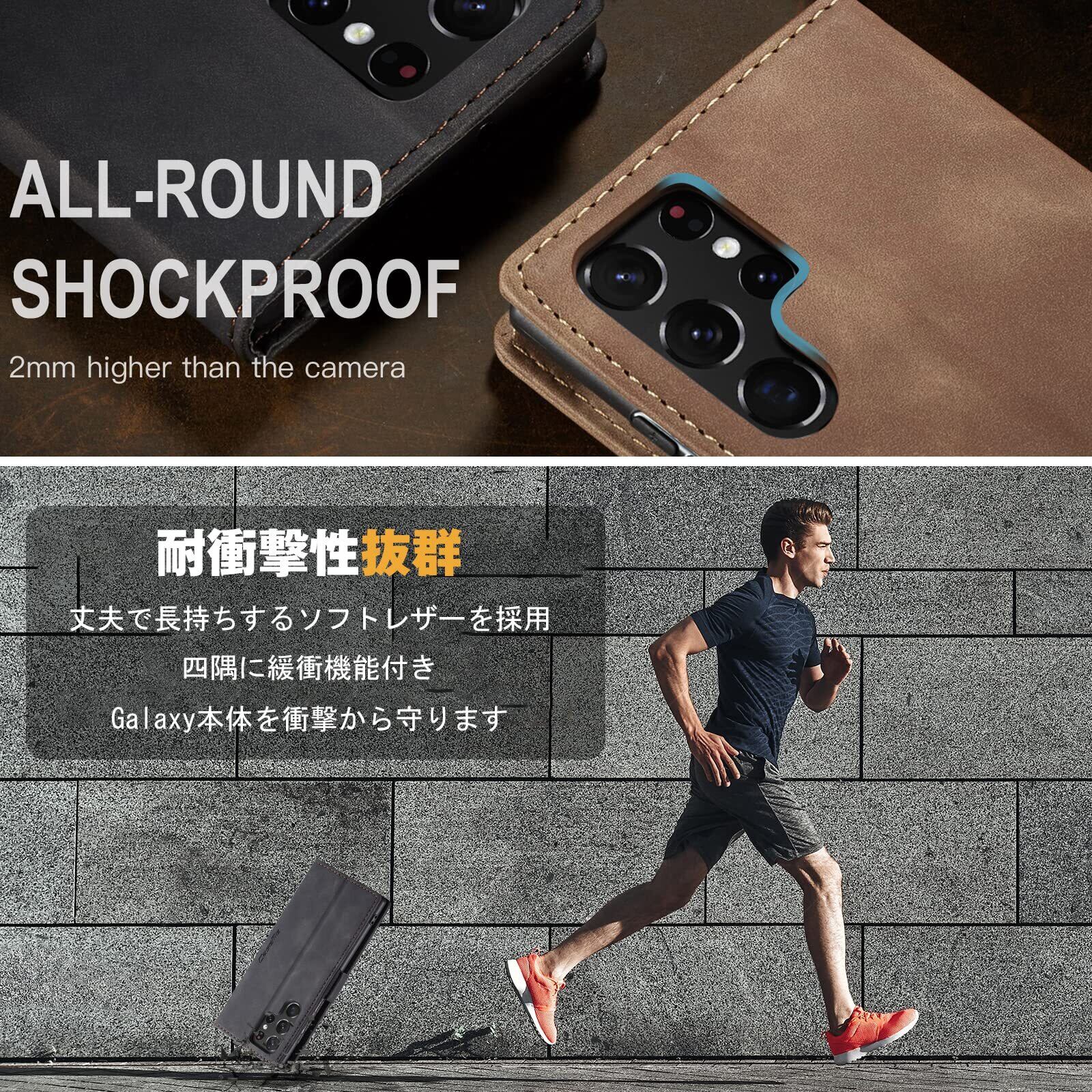 Galaxy S22 Ultra ケース 手帳型 Samsung ギャラクシー S22ウルトラ / SC-52C / SCG14 用 カバー OURJOY スマホケース 財布型 カード収納 横開き レザー TPU 耐衝撃 携帯カバー 横置き機能 マグネット式 おしゃれ ・ ブラック