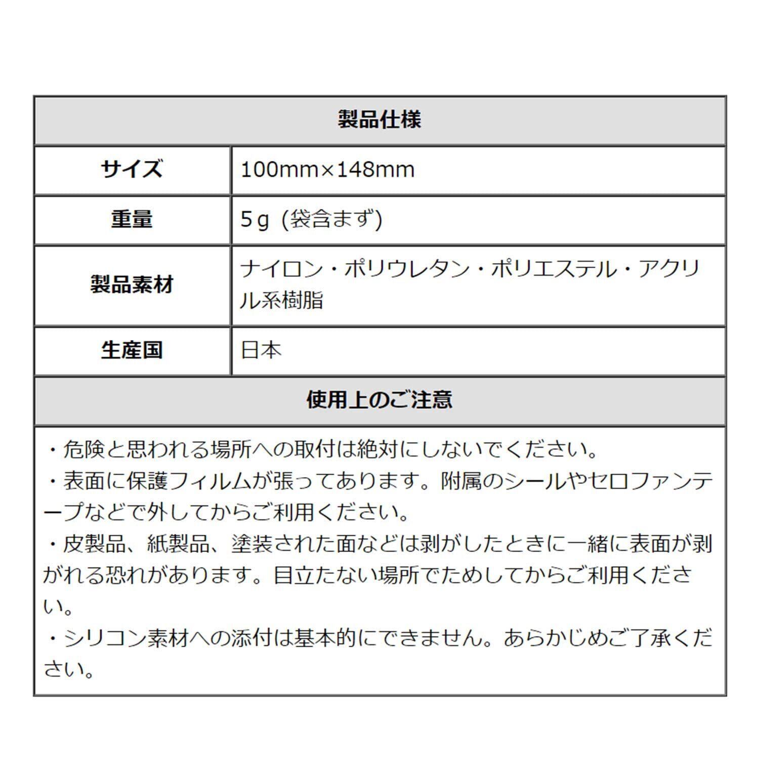 【上手な使い方】・貼り付ける先の素材と形を確認してください。・貼り付ける前にキレイに掃除してください。・貼り付けた後、少し時間をおいてください。・角に少し丸みをつけてください・表面フィルムをはがしてください。