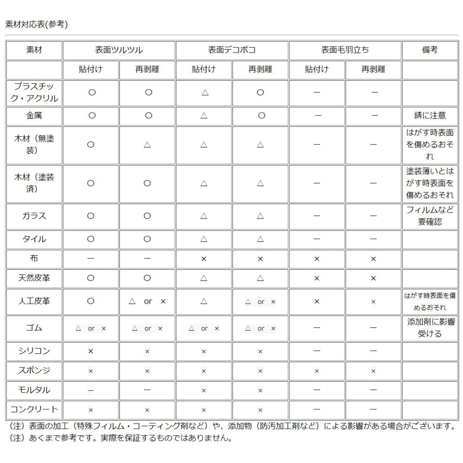 【ご注意】貼る対象の素材によっては、貼れなかったり、すぐに剥がれる場合があります。セロファンテープを、何度か貼ってはがせる場所にはご利用いただける場合が多いようです。