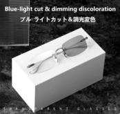[REONAS] ブルーライトカット メガネ + 調光 変色 リムレスメガネ パソコン用 メガネ ビジネス PCワークから外出時はサングラスへ変化する2Way仕様 軽量 UV 90%以上 リムレス silver