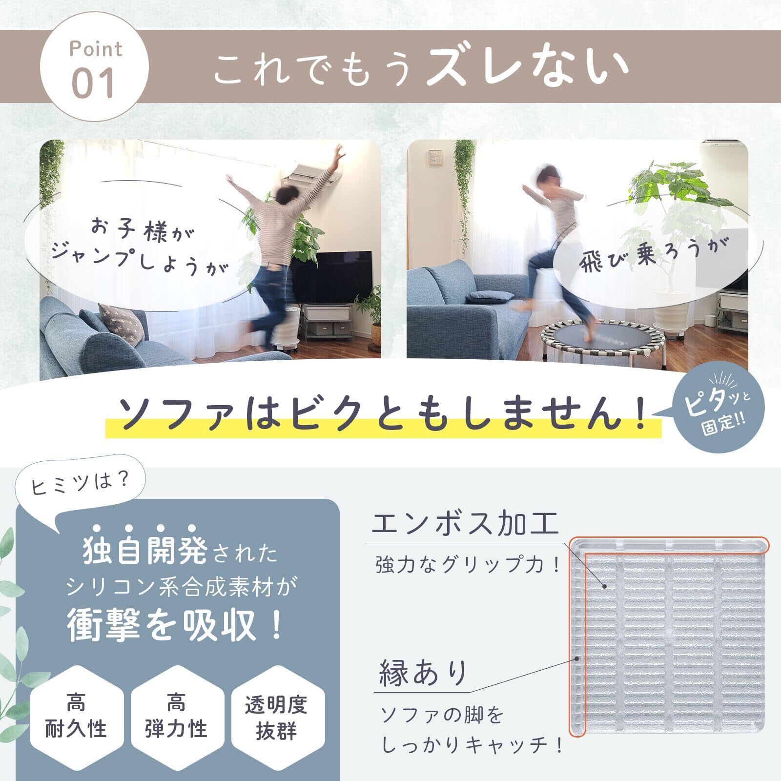 【ピタッとズレない】 Ouchi+Design ソファ 滑り止め 最強 ズレ防止 傷防止 床保護 (角型)