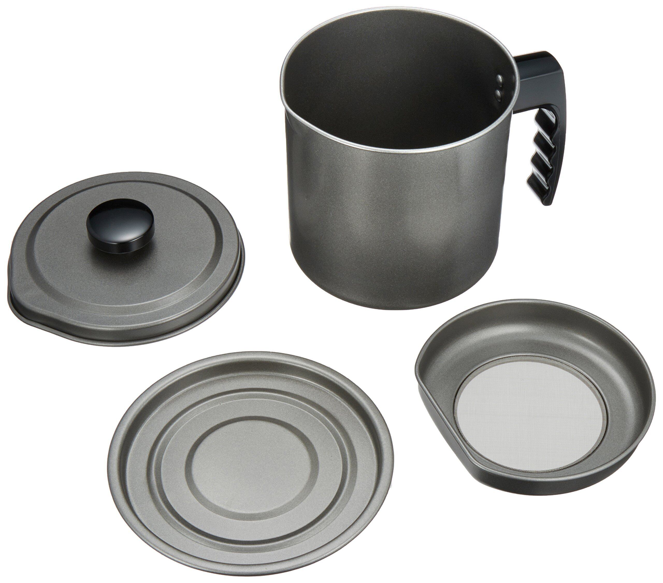 本体:鉄、内外面:ふっ素樹脂加工、油こしアミ部:ステンレス鋼