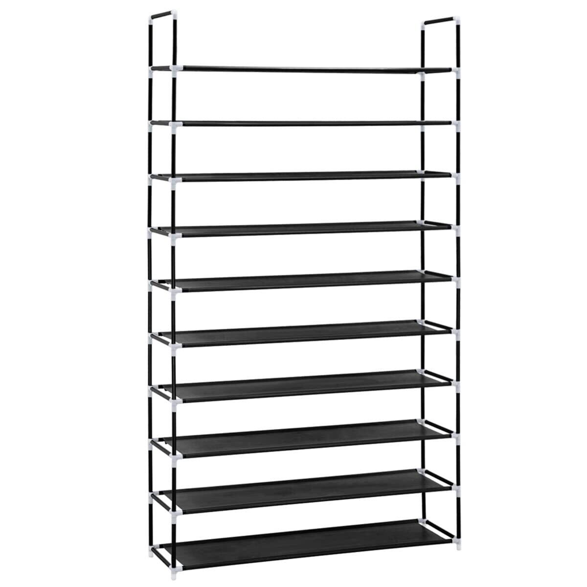 【省スペース 大容量のシューズラック ブラック】サイズ:幅約76×奥行28×高さ176cm,靴ラックは、全10段で、靴を38〜40足収納できます。収納スペースが狭く、靴が多い方に、この靴ラックは非常に好適です。フットプリントが小さいため、靴ラックはスペース効率が非常に高く、すべてのコーナーに適しています。