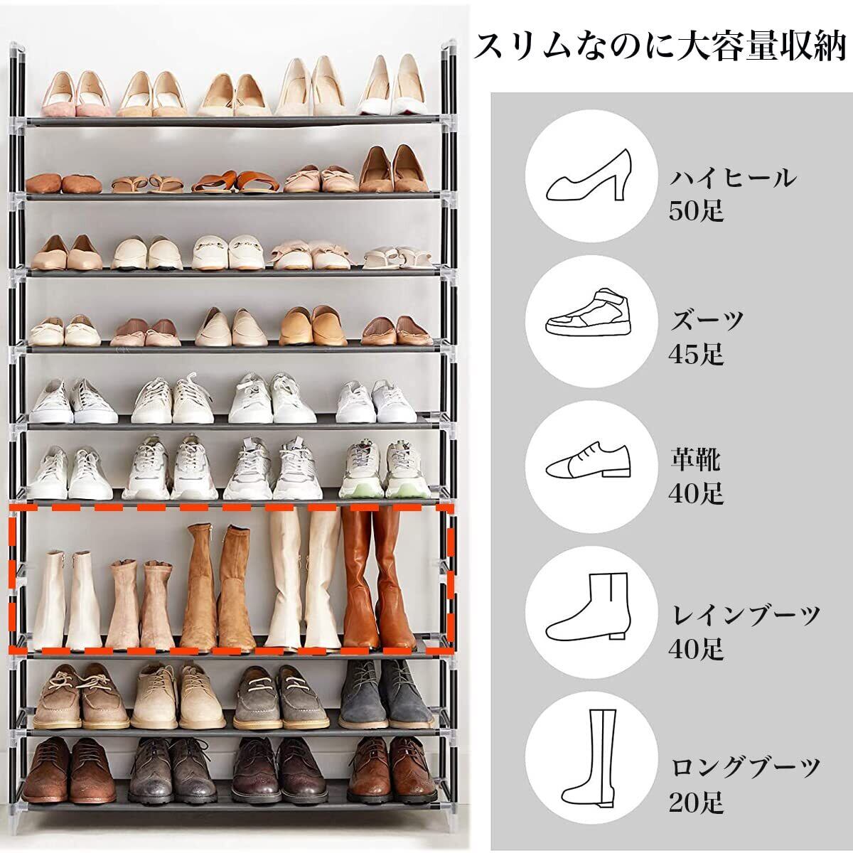 シューズラック 10段 靴収納 靴棚 38~40足 下駄箱 省スペース シューズボックス スリム 玄関に靴を効率収納 靴入れ 組み立て式 幅約76×奥行28×高さ176cm