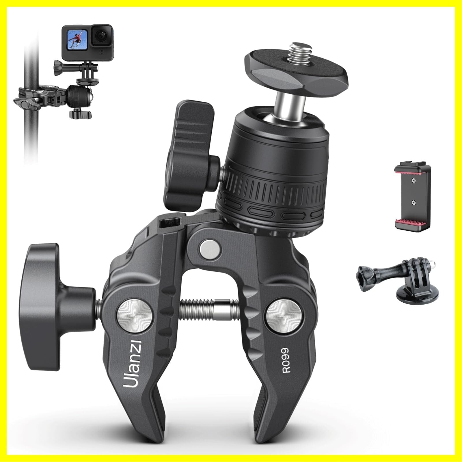 Ulanzi スーパークランプ 360°雲台 カメラマウント 1/4ネジ カメラホルダー Gopro用 緩み防止 蟹バサミクランプ モニターサポート/液晶モニター/アクションカメラ/一眼レフ/自転車・バイク・Goproに対応