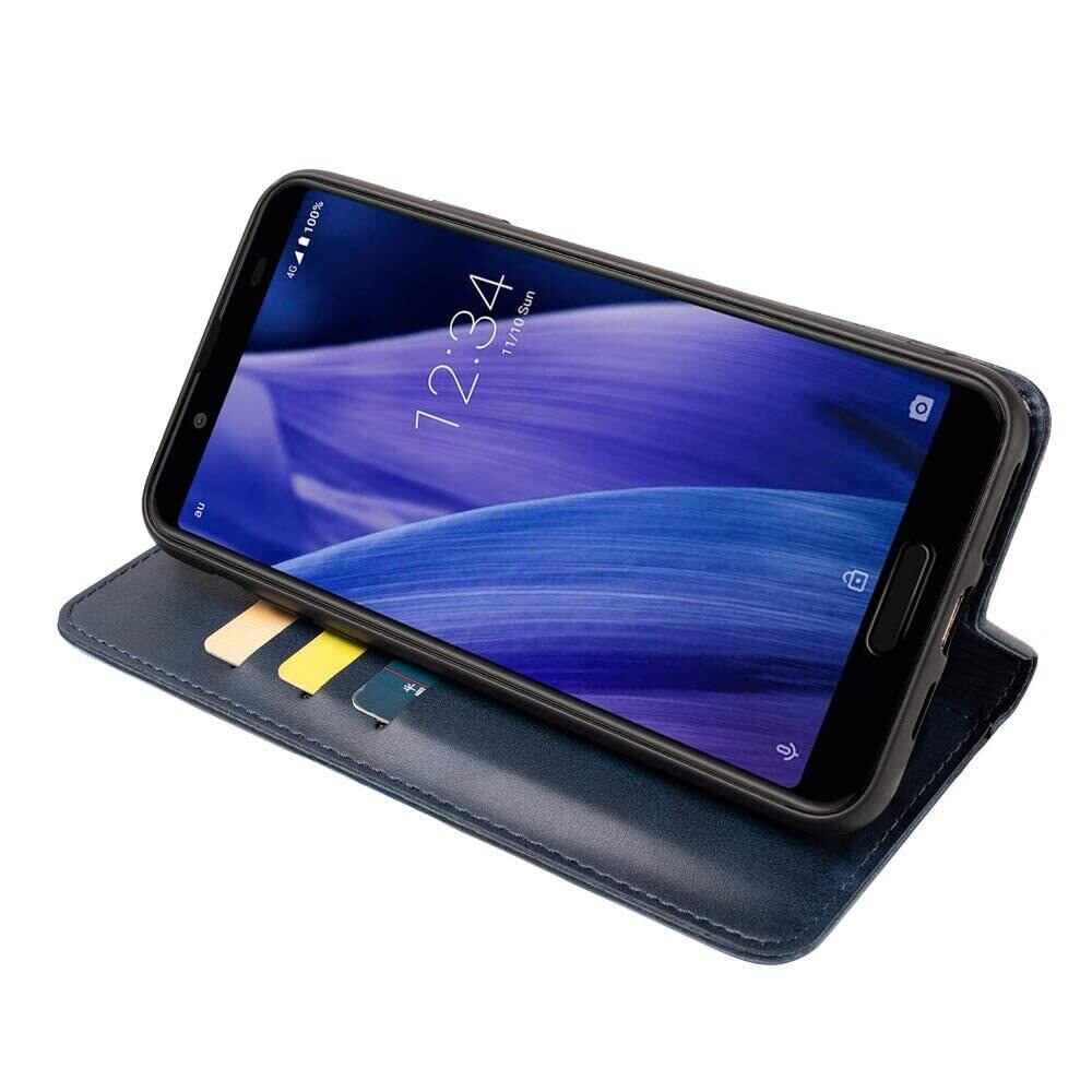 適用 AQUOS sense3/sense3 lite/sense3 basic/Android One S7 ケース 手帳型 SH-M12/SHV45/SHV48/SH-02M 手帳型 ケース カバー PUレザー カード収納 財布型 耐衝撃 ケース マグネット スタンド機能付き 5色 (深い青)