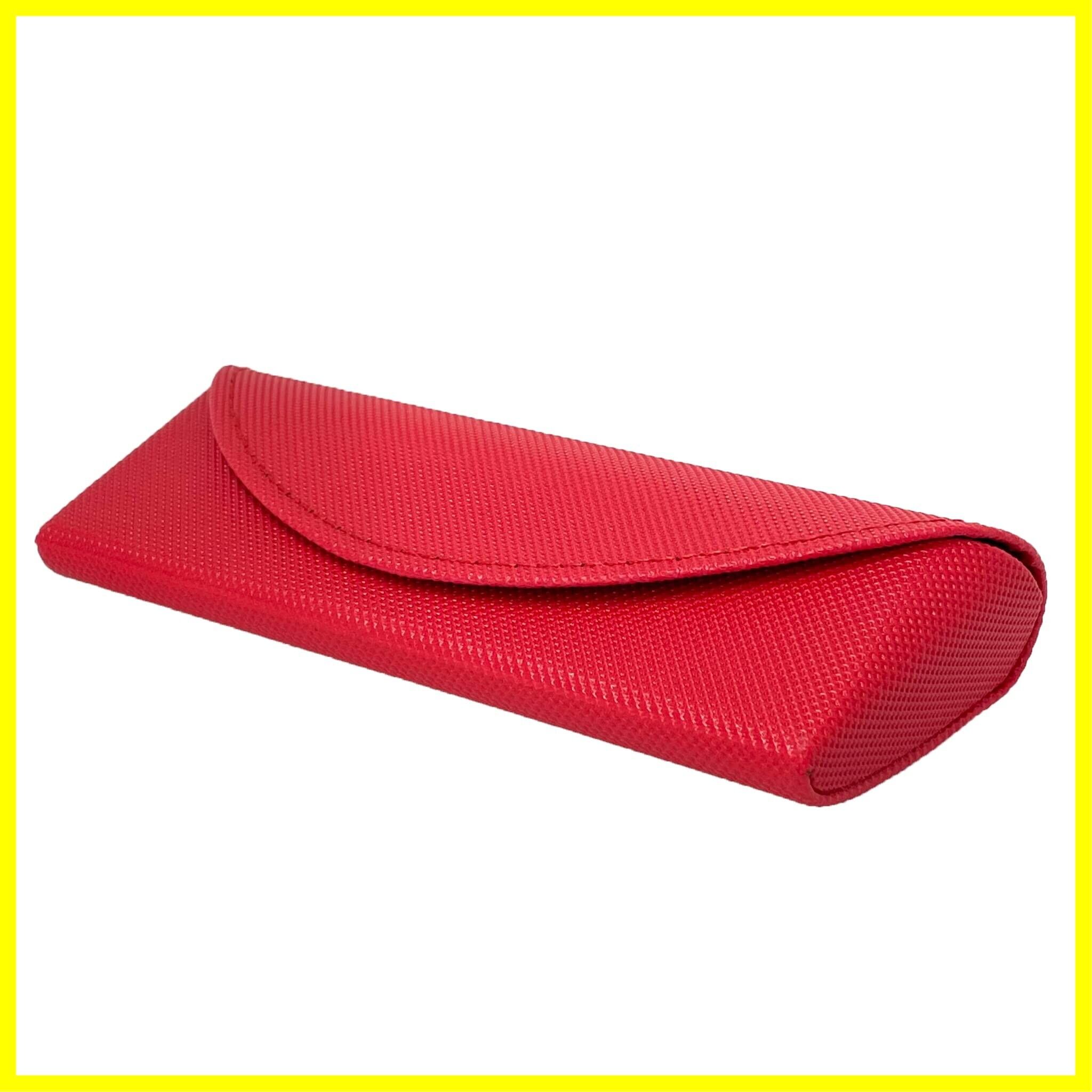 【メガネを効率的に収納できる三角形状】 メガネケースはコンパクトに持ち運べるのが一番。メガネの形状に合わせて計算し尽くされた構造をしております。そのため見た目以上に収納力が高く、大きめのサングラスでも収納することが可能です。