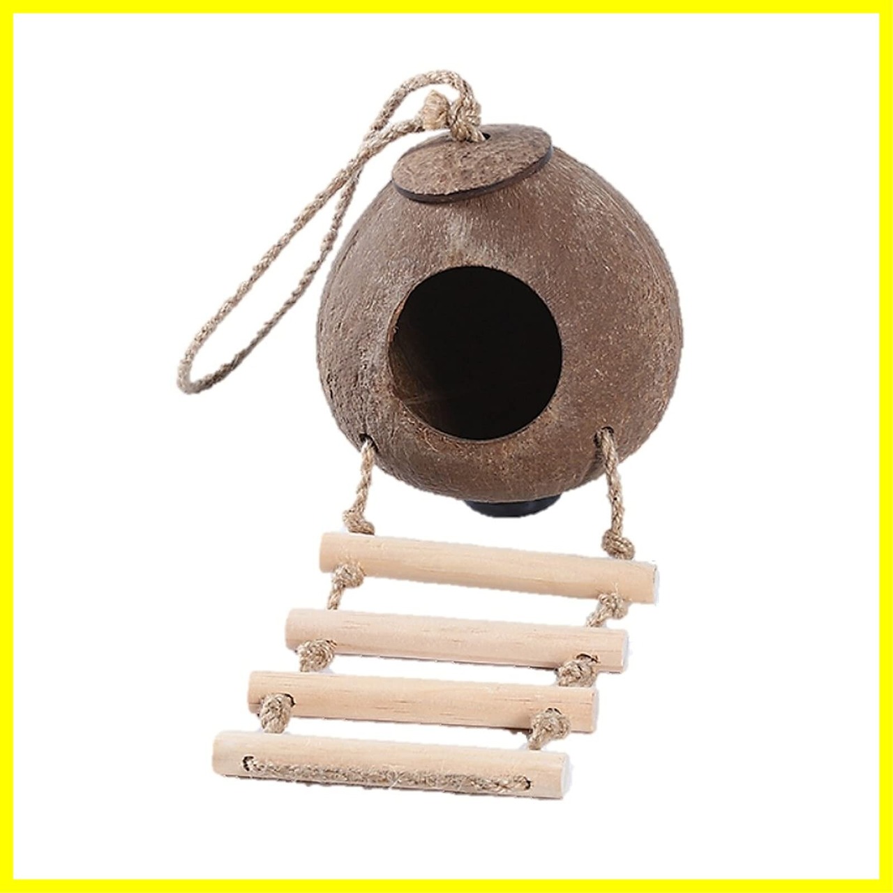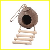 【商品データ】巣箱サイズ約11㎝×11㎝ 巣穴約6.5㎝ はしご幅10㎝ 素材 ヤシの実 ※※天然素材で植物をそのまま使用おります。 形や風合いは個体差がありますのでご了承ください。