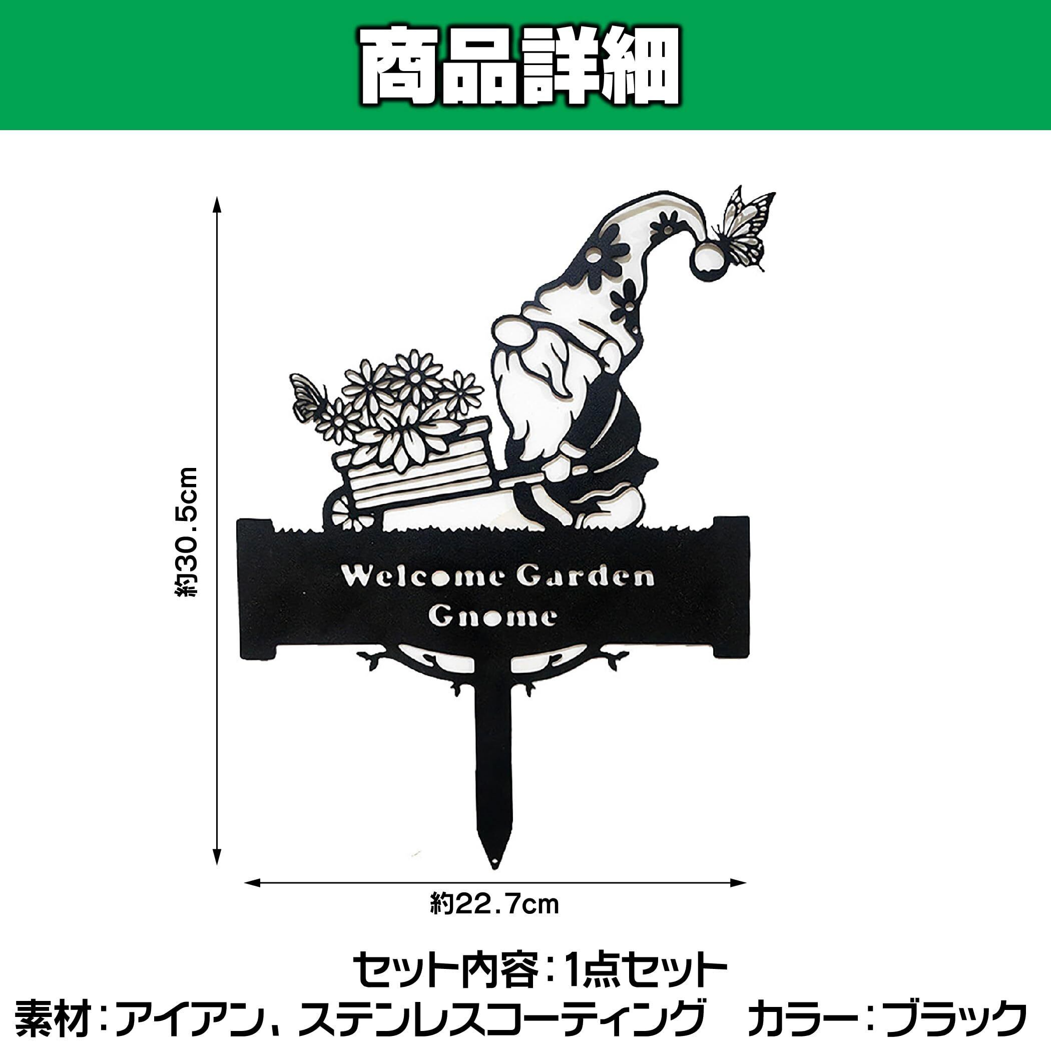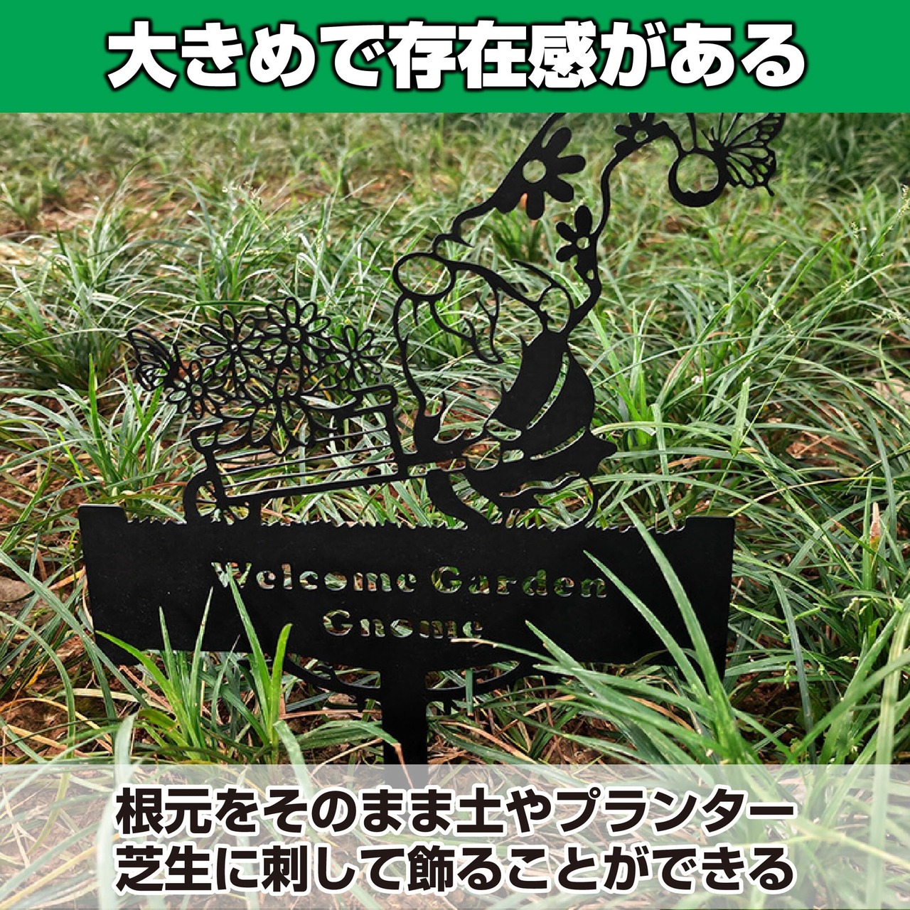 オシャレで高級感あるウェルカムボードに:精巧に作られたスチール素材のガーデンピックには、花を運ぶノームの姿とWelcomeGardenの文字が刻まれています。重厚感があり、庭の雰囲気をワンランクアップさせてくれる高級感が魅力です。