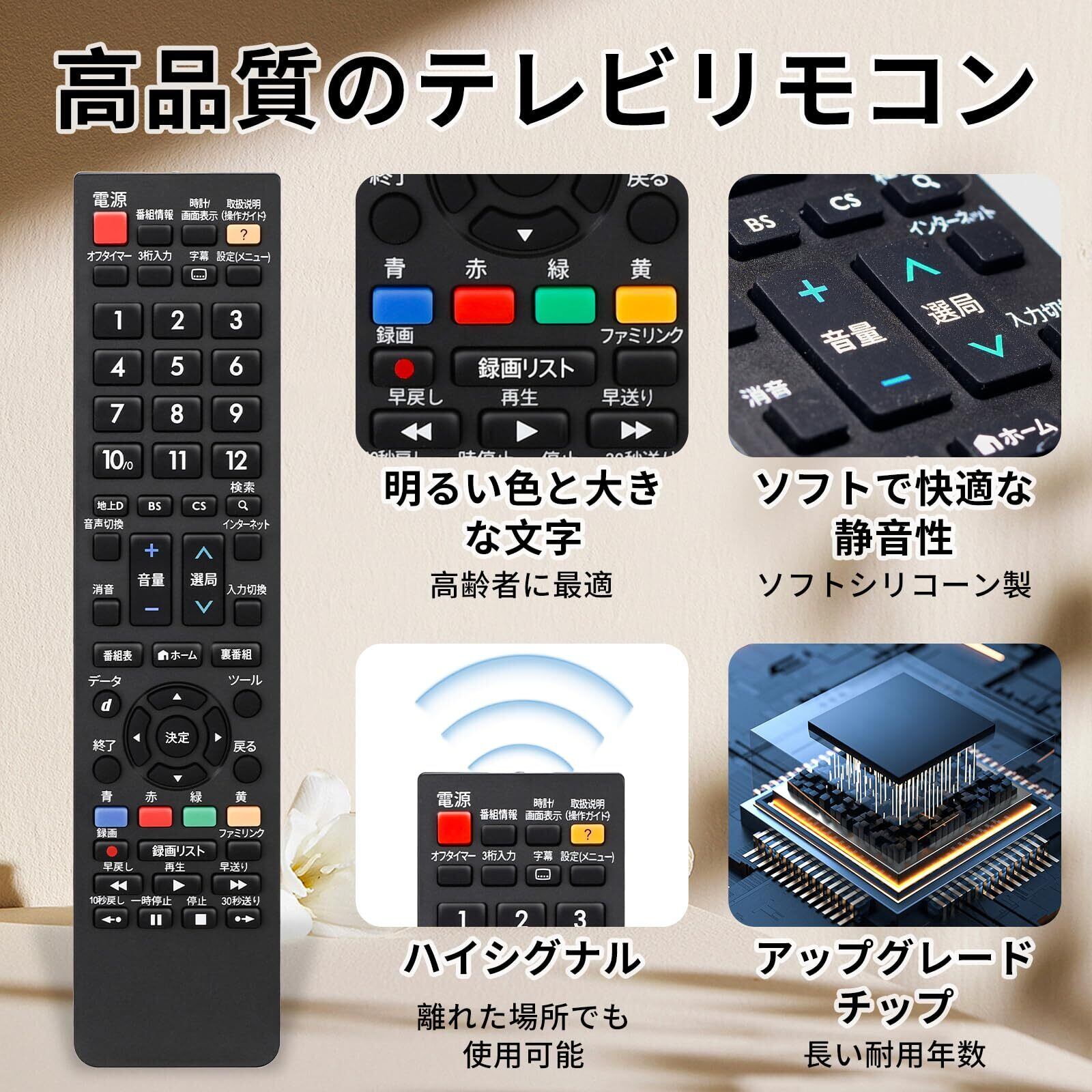 【明るい色と大きな文字】高齢者にも操作しやすいです。ボタンは高品質のシリコン製で、柔らかく、快適です。ボタンを押しても音が出ません。