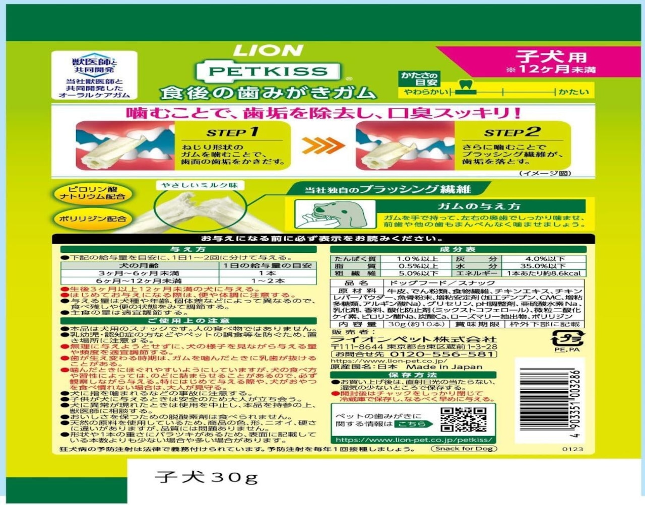 【愛犬の健康を守る歯磨きセット!】この「ライオン 犬の歯磨きはじめてセット」は、愛犬の歯と口内の健康を守るためにデザインされた理想的な歯磨きセットです!子犬にも優しい食後の歯磨きガムと、チキン風味の歯みがき体験で、楽しく歯磨きを習慣化できます!
