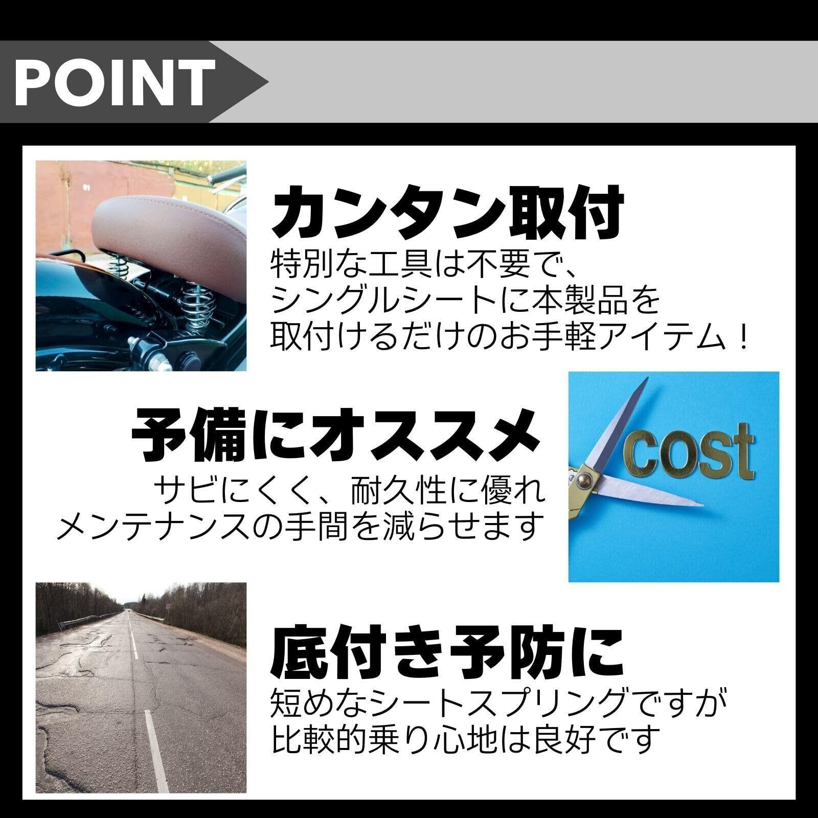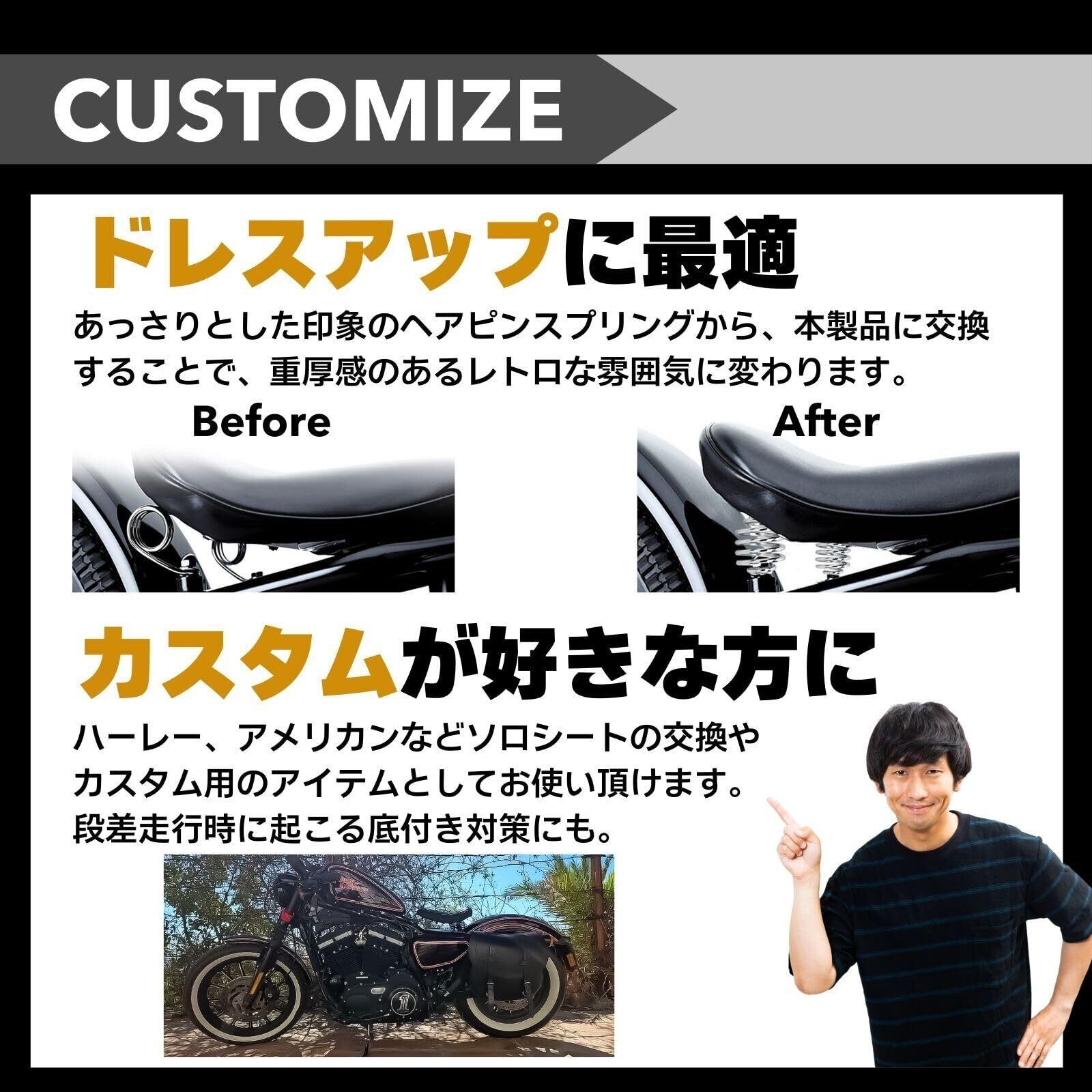 【カスタマイズ性】このソロシートスプリングは、さまざまなバイクモデルに対応しており、カスタマイズの幅を広げます。自分だけのオリジナルバイクを作り上げるための理想的なパーツで、個性を表現することができます。
