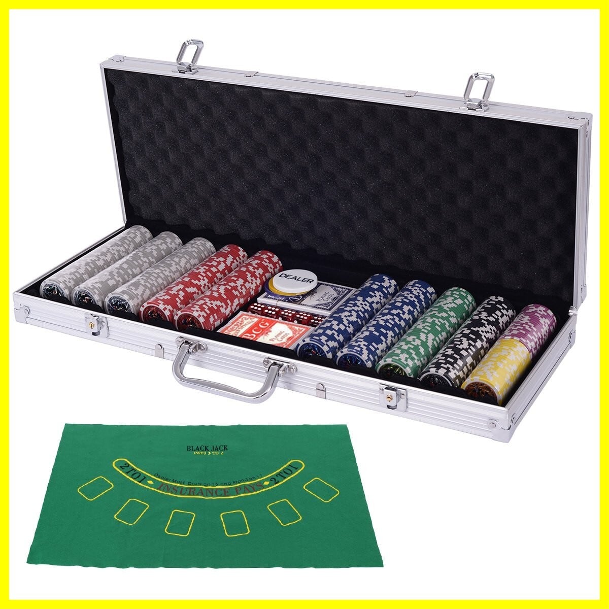 COSTWAY ポーカーセット 500枚チップ 数字入り マット付き ポーカーチップ チップ カジノチップ カジノゲーム シルバーケース