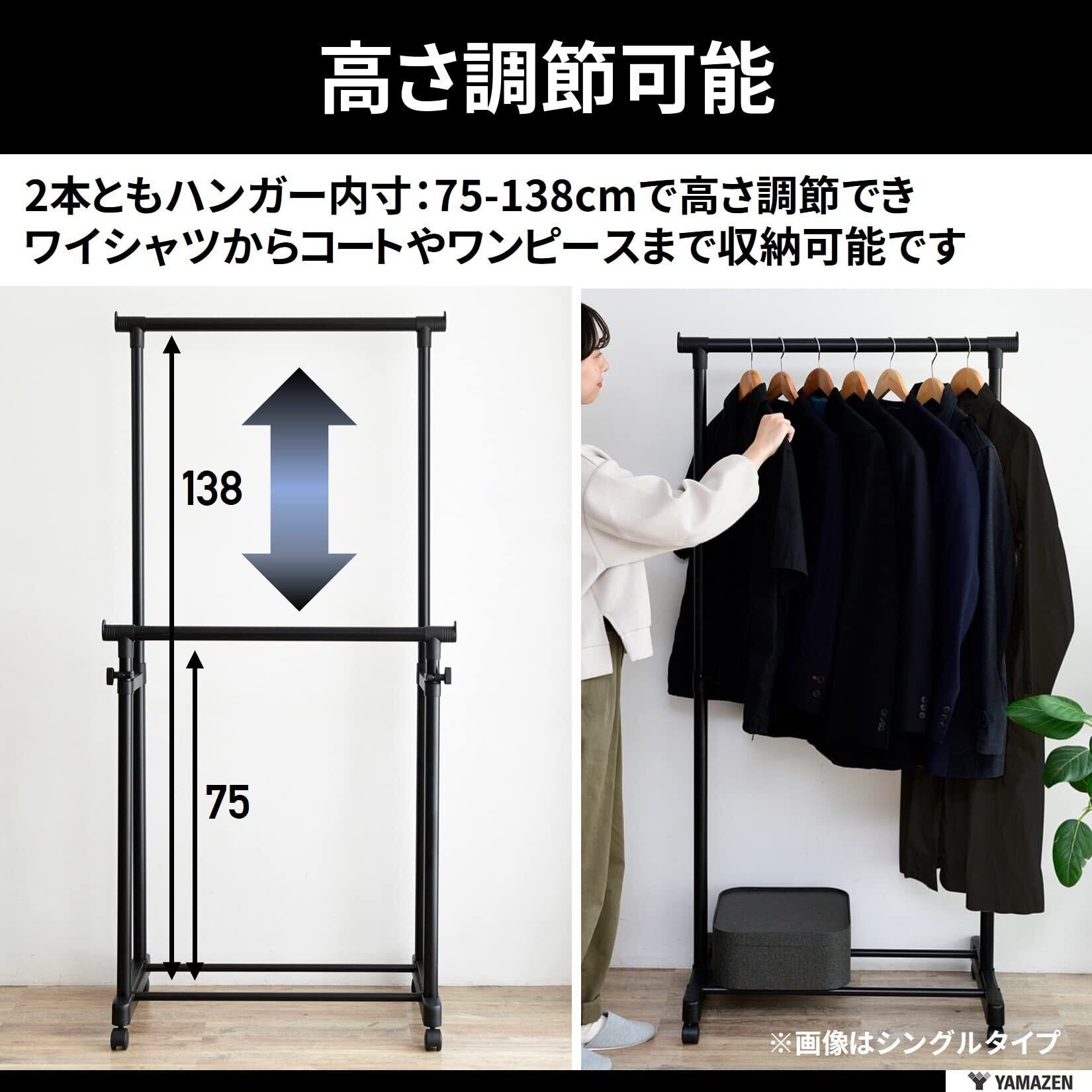 山善(YAMAZEN) ハンガーラック (パイプハンガー) キャスター付き 縦伸縮 ダブル 幅75×奥行43×高さ89-152cm 組立品 ブラック MKS-W(ABK)
