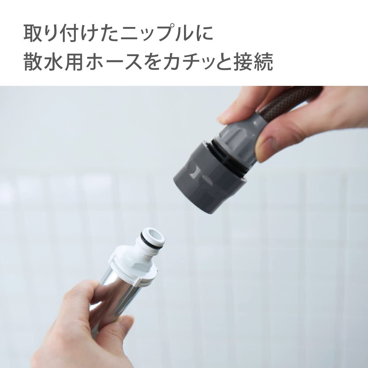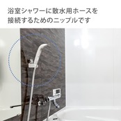 お風呂でお使いの浴室用シャワーホースに取り付け、散水用ホースをワンタッチで接続できます。